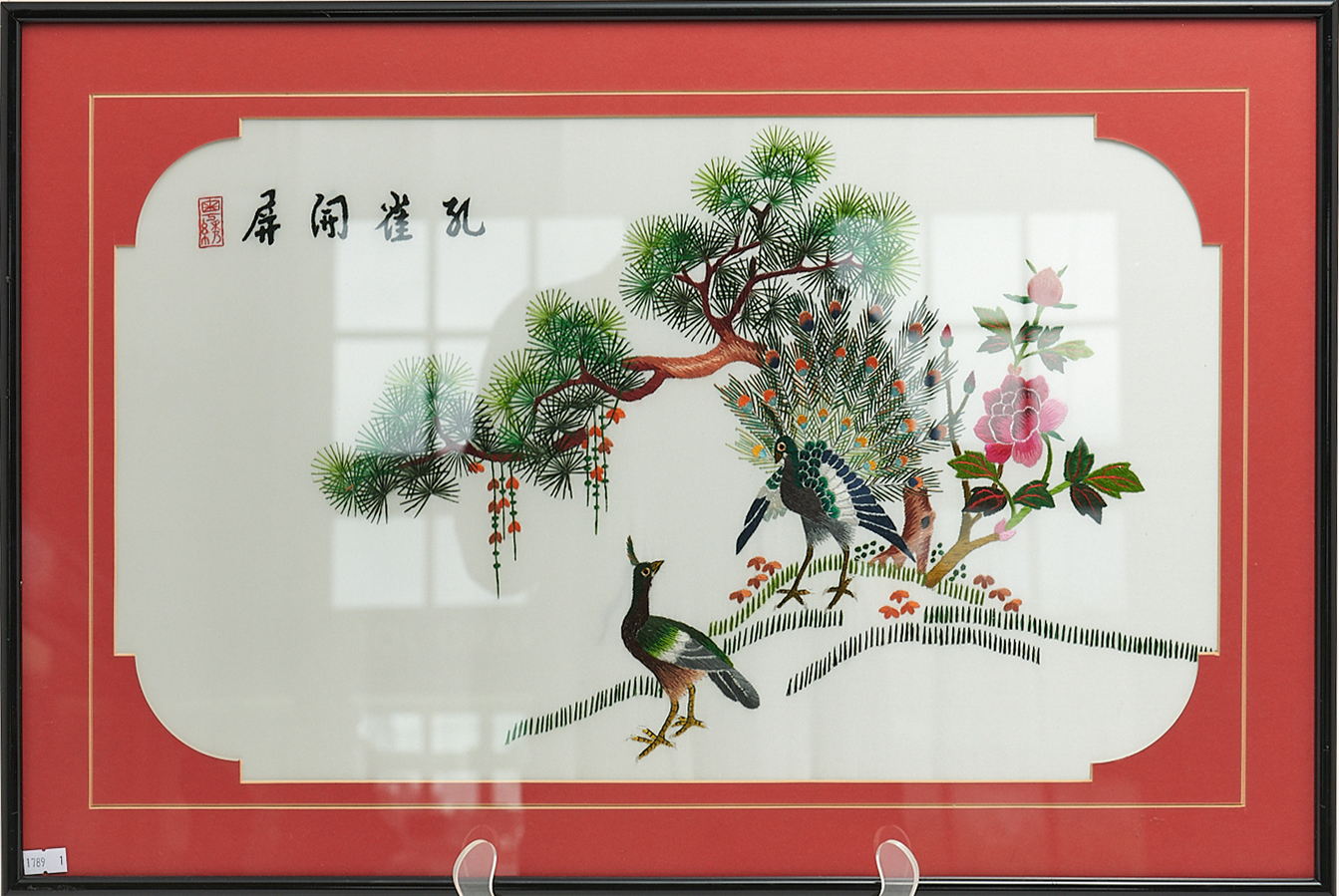 A CHINESE SILK EMBROIDERY H.45 X W.67CM, LEONARD JOEL LOCAL DELIVERY: MEDIUM