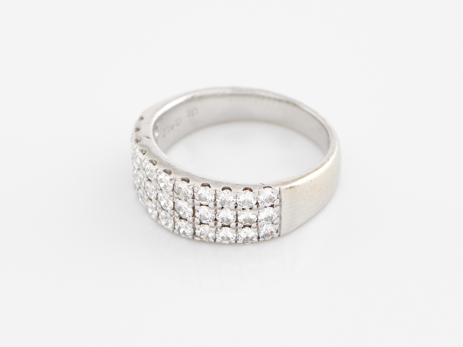 A DIAMOND SET BAND IN PLATINUM, RING SIZE M, 8.2GMS