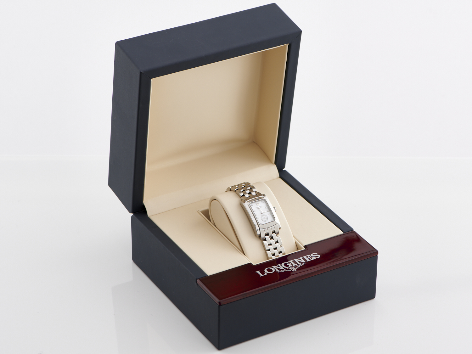 A DIAMOND AND MOTHER-OF-PEARL 'DOLCE VITA' WRISTWATCH IN STAINLESS STEEL BY LONGINES, BOXED WITH PAPERS