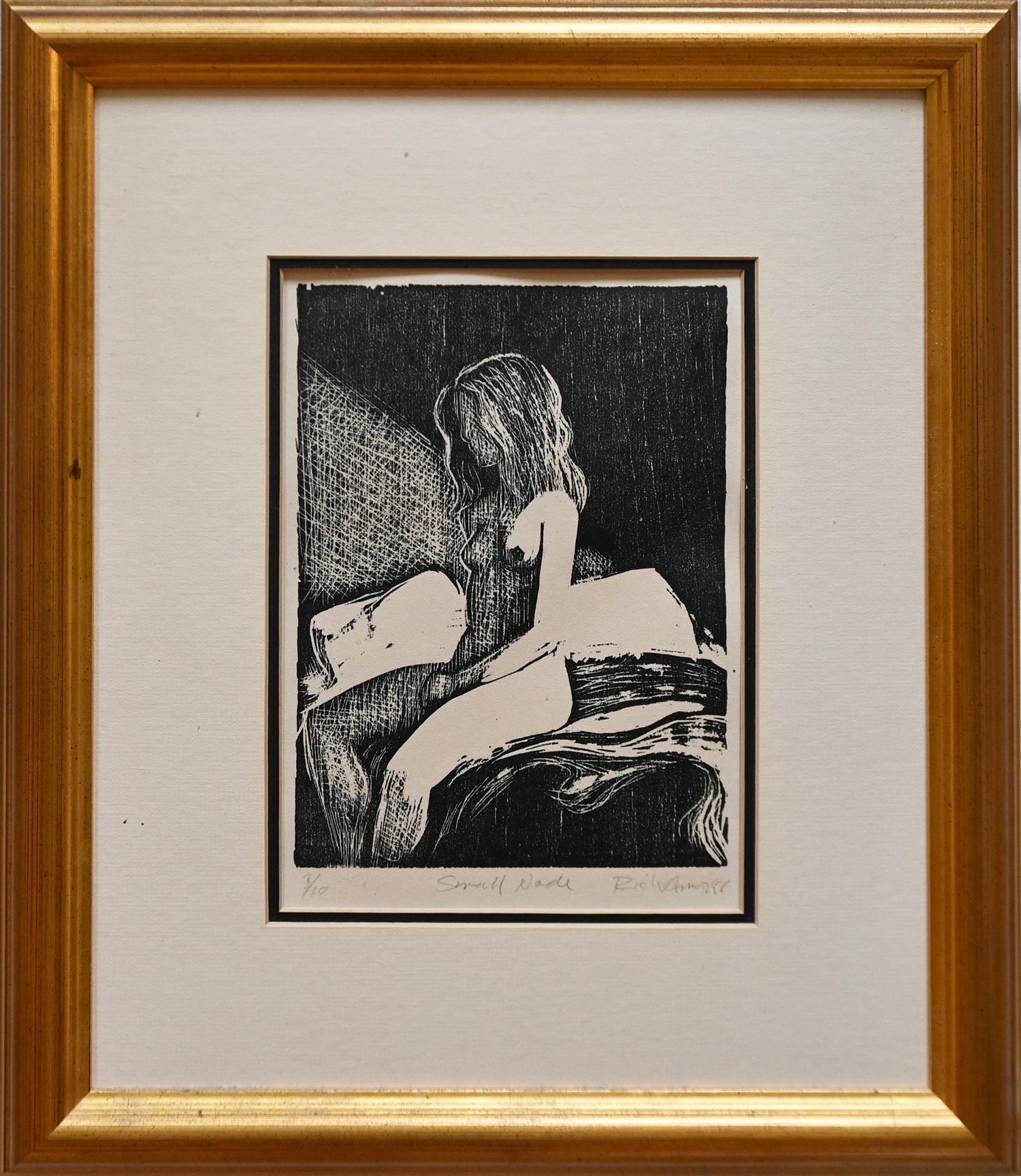Overall good condition. Paper is slightly cockled, which indicates the work is not glued down. No glass with frame.