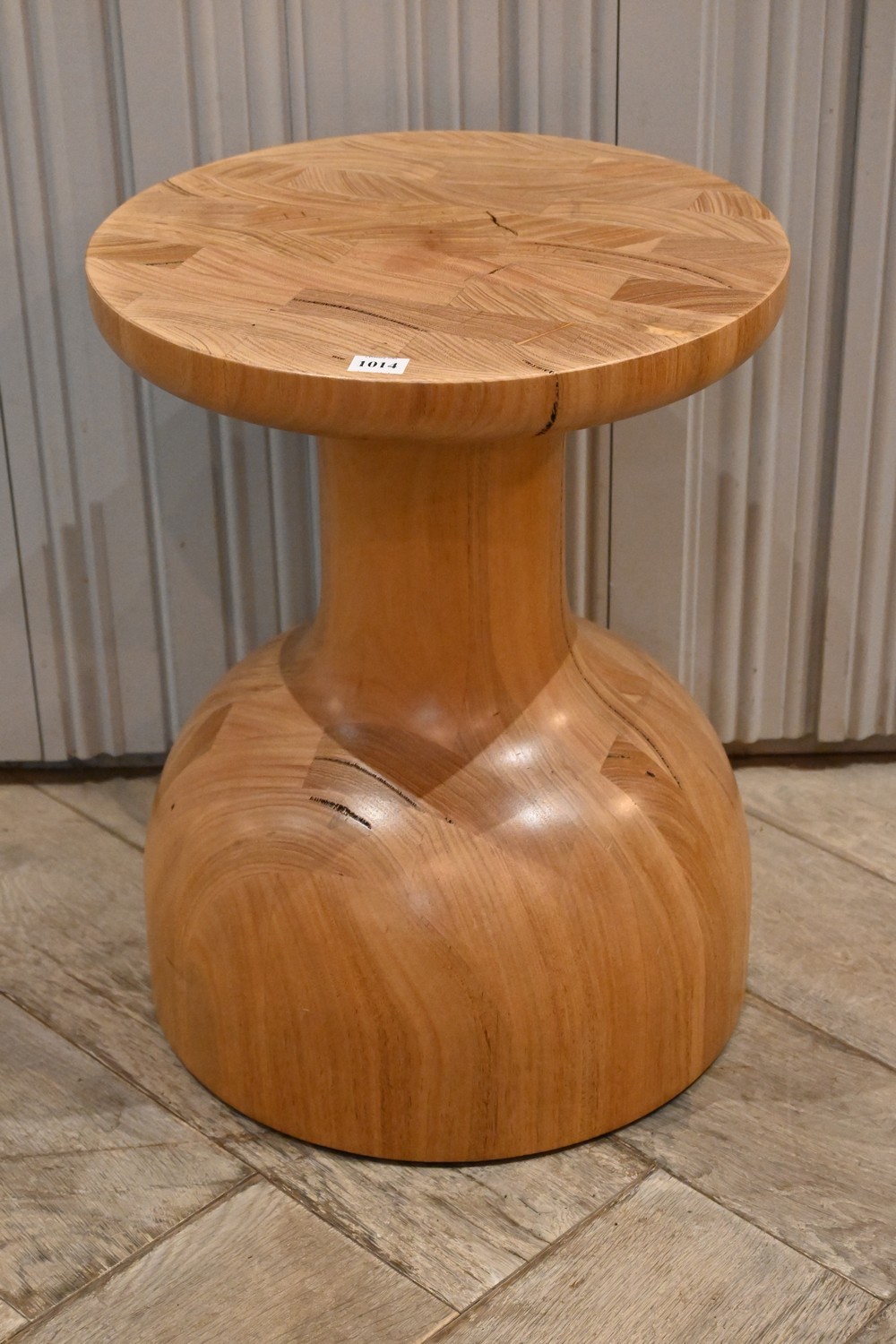 A CUSTOM MADE CONTEMPORARY AMERICAN OAK SIDE TABLE (46H X 36 DIAMETER) (LEONARD JOEL DELIVERY SIZE: MEDIUM)