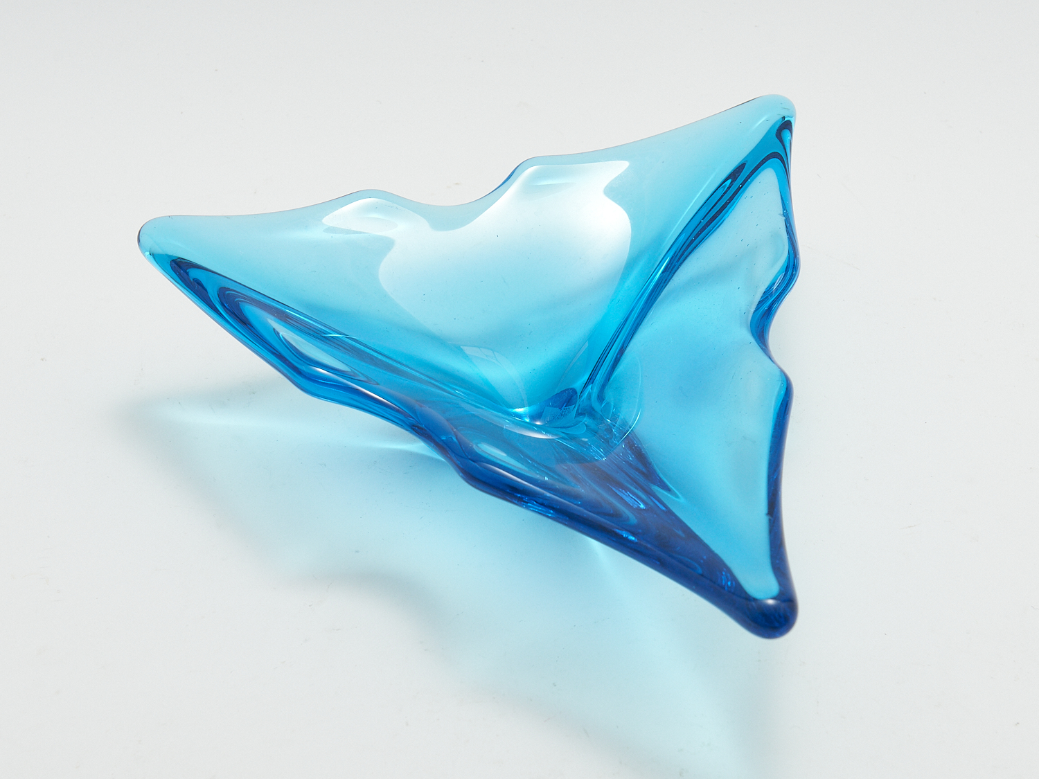 AN URANIUM BLUE TRIANGLE MURANO CENTREPIECE W.34CM, LEONARD JOEL LOCAL DELIVERY: MEDIUM