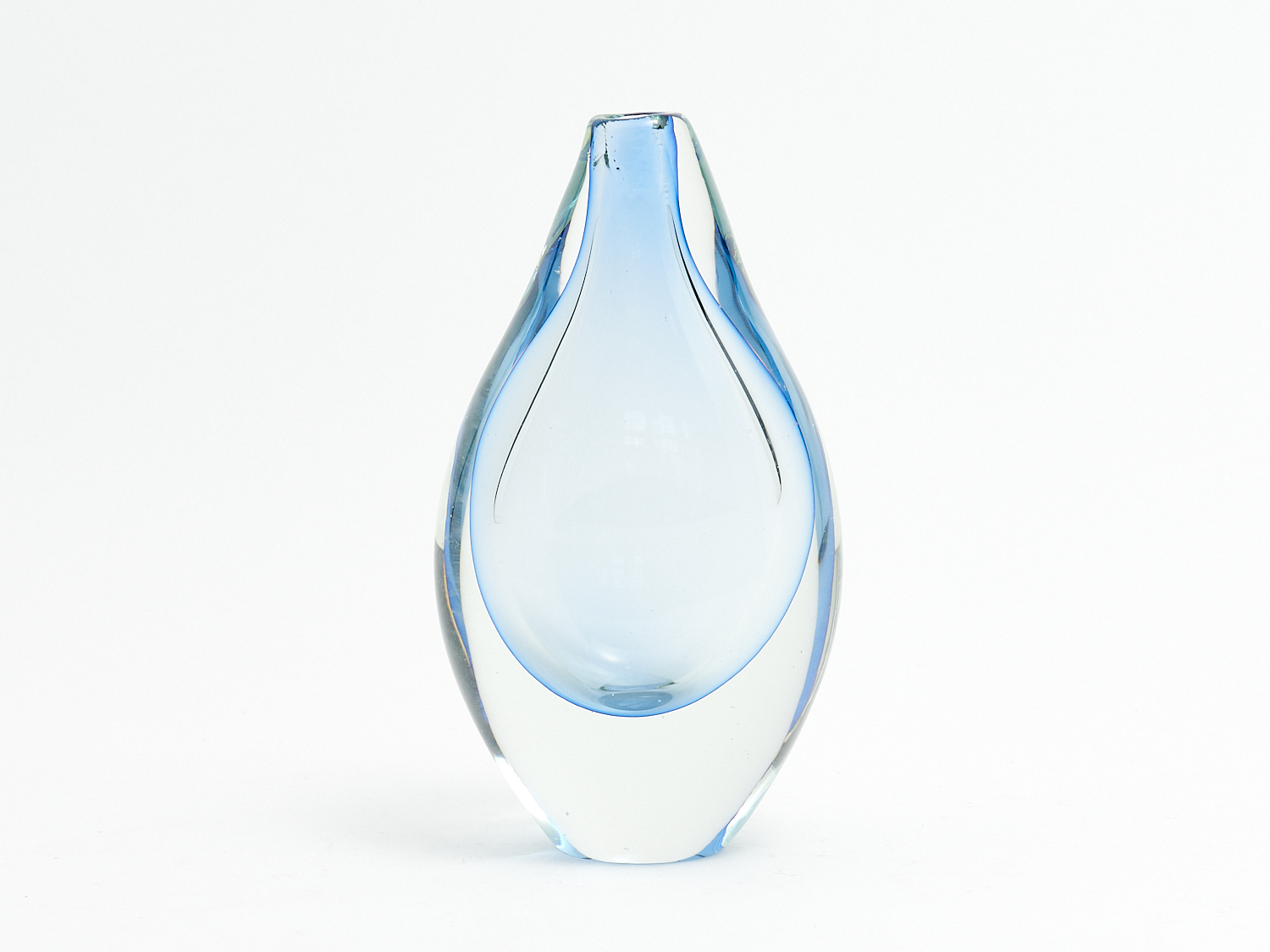 A BLUE CASED GLASS TEARDROP VASE H.24CM, LEONARD JOEL LOCAL DELIVERY: SMALL