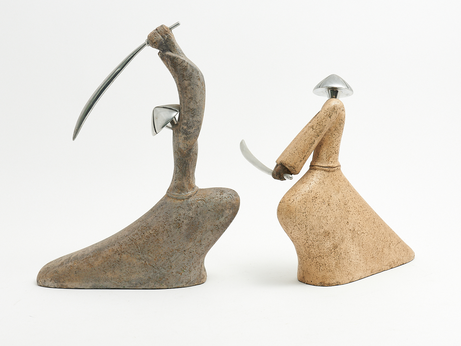 TWO DECORATIVE SAMURAI FIGURES H.41CM (TALLEST), LEONARD JOEL LOCAL DELIVERY: MEDIUM