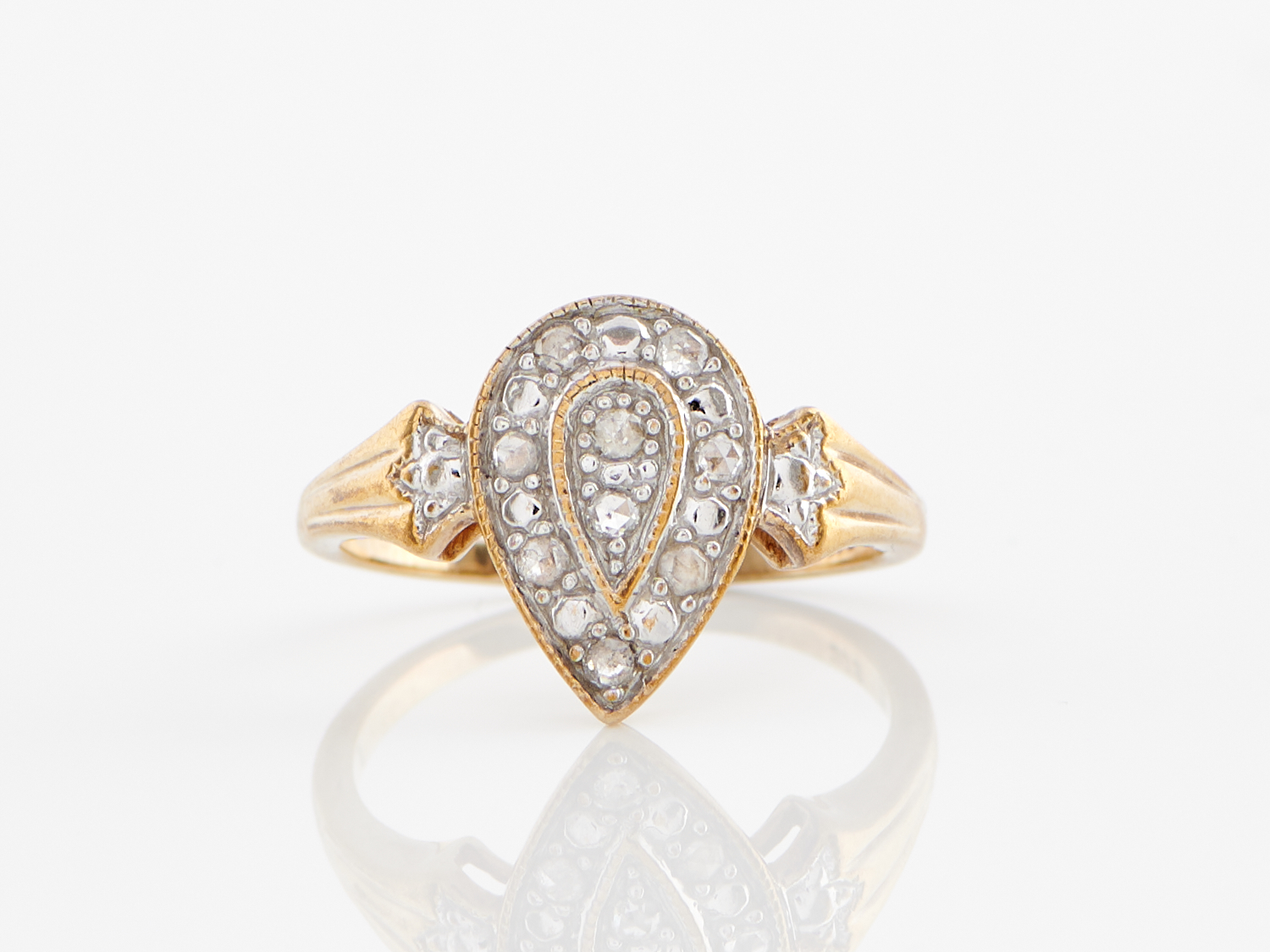 A DIAMOND CLUSTER RING IN 9CT ROSE GOLD, SIZE N, 2.6GMS