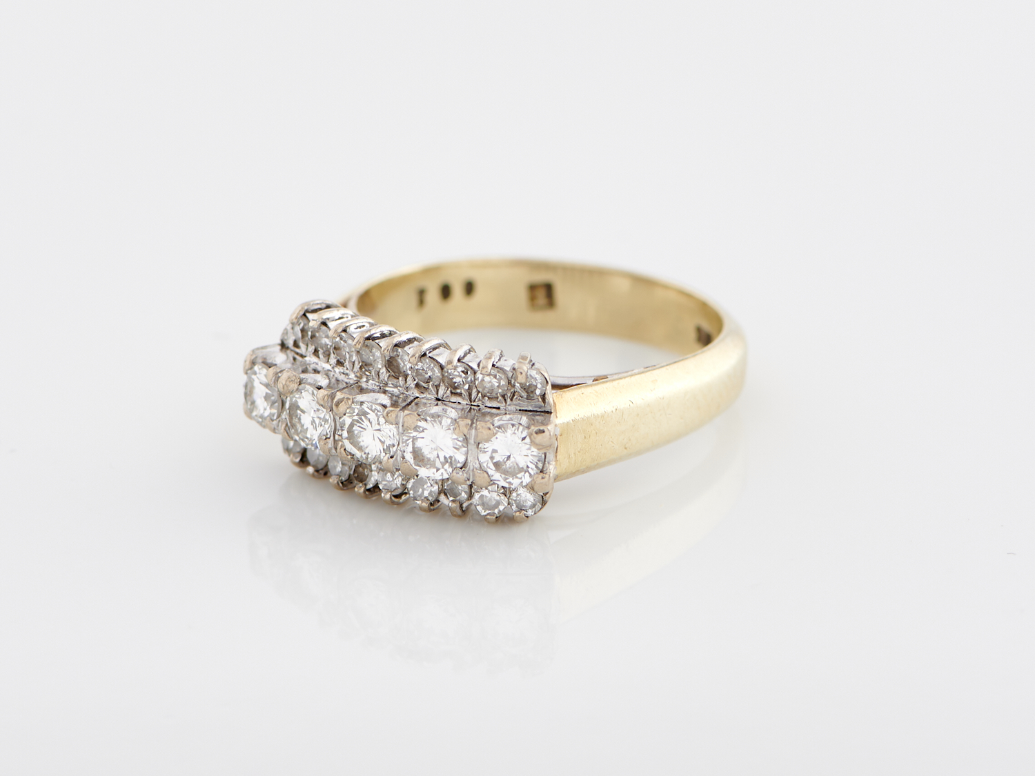 A DIAMOND DRESS RING IN 18CT GOLD, THE DIAMONDS TOTALLING 0.90CTS, SIZE M