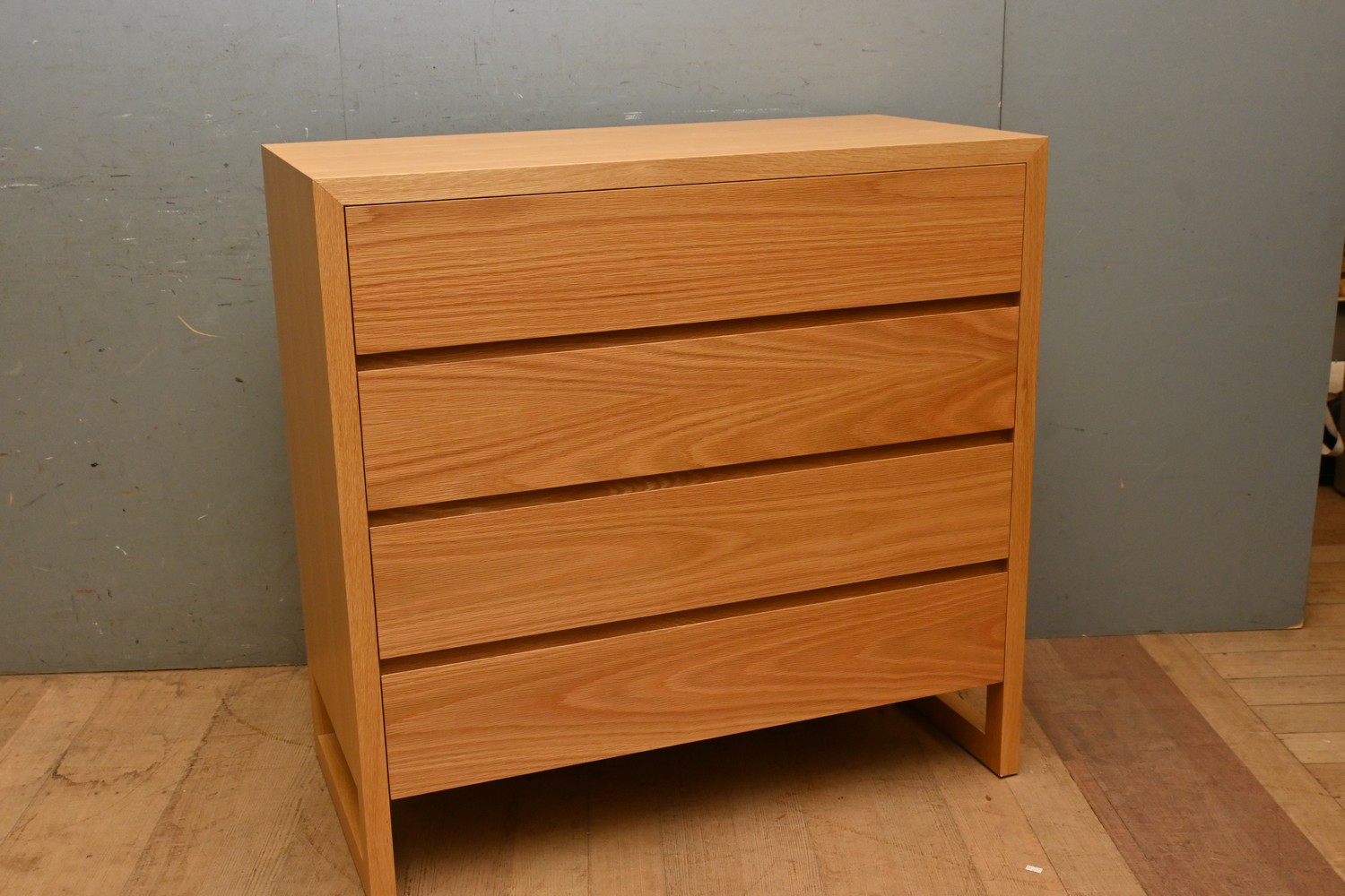 A CUSTOM MADE CONTEMPORARY AMERICAN OAK CHEST OF FOUR DRAWERS 98H X 100W X 50D CM) (PLEASE NOTE THIS HEAVY ITEM MUST BE REMOVED BY CARRIERS AT THE CUSTOMER'S EXPENSE. LEONARD JOEL STAFF CANNOT ASSIST CARRYING THIS ITEM) (X-LARGE ITEM)