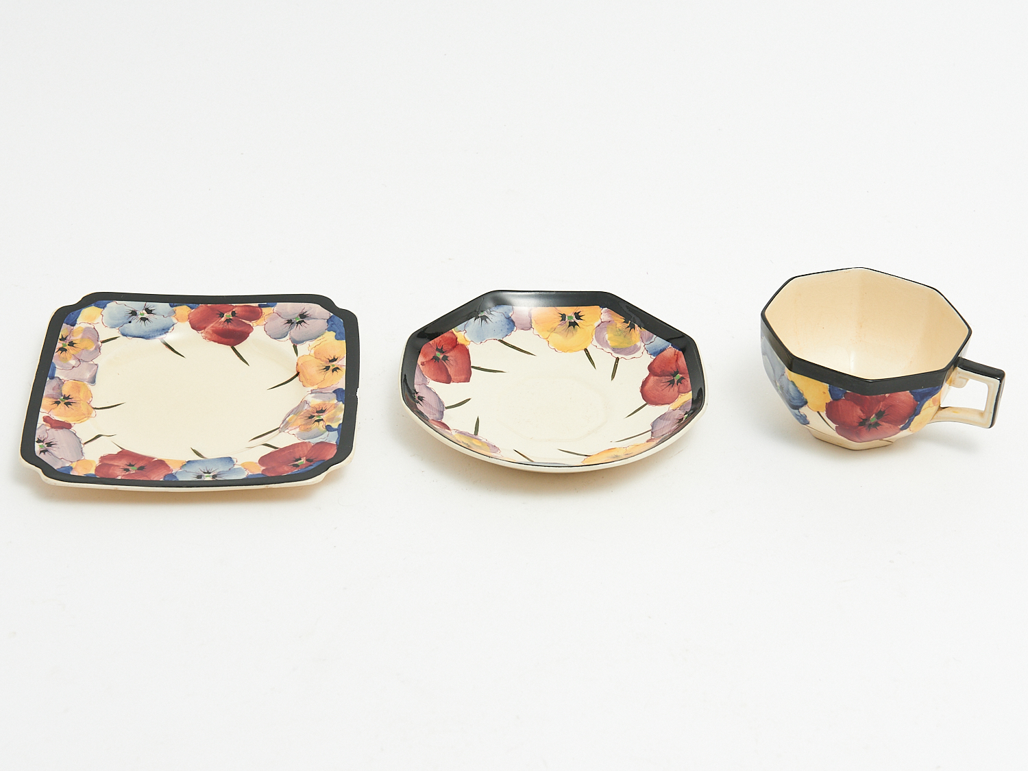 A ROYAL DOULTON PANSY PATTERN TRIO, LEONARD JOEL LOCAL DELIVERY: SMALL