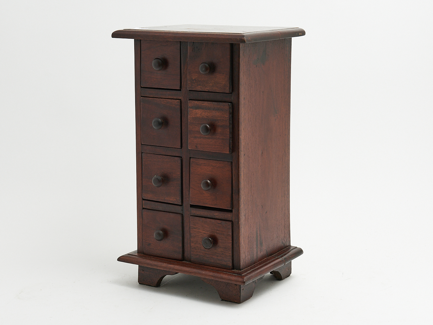 A VINTAGE EIGHT DRAWER MAHOGANY CHEST, H.43CM X W.25CM, LEONARD JOEL LOCAL DELIVERY: MEDIUM