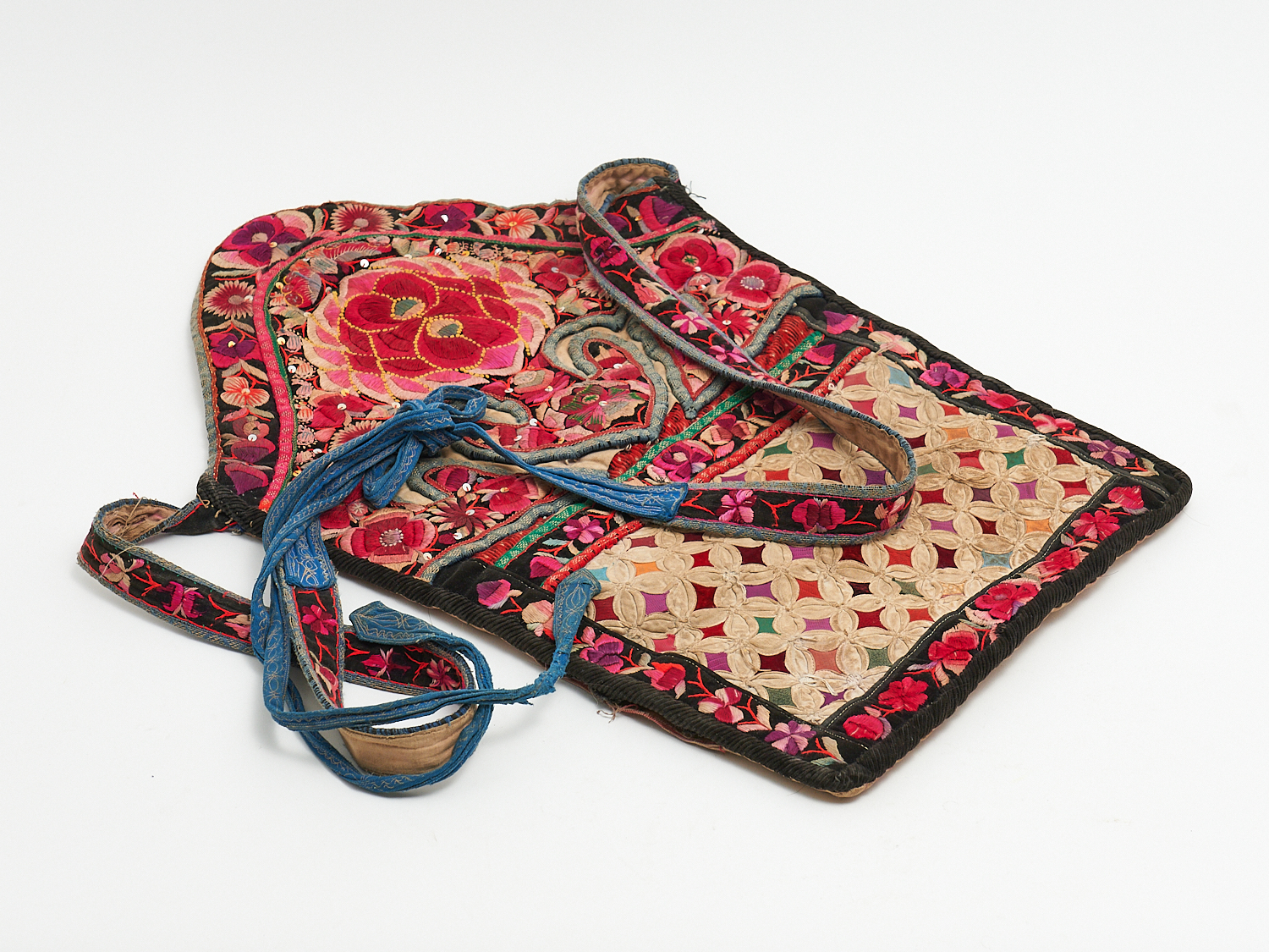 A CHINESE EMBROIDERED SILK FLORAL PATTERN BREAST PLATE, L.50CM, LEONARD JOEL LOCAL DELIVERY: MEDIUM
