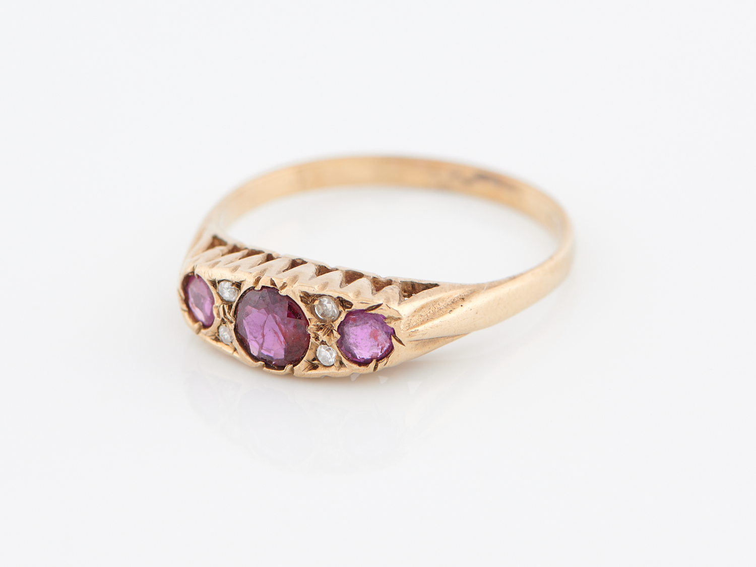 A RUBY AND DIAMOND RING IN 9CT GOLD, CIRCA 1910, RING SIZE O