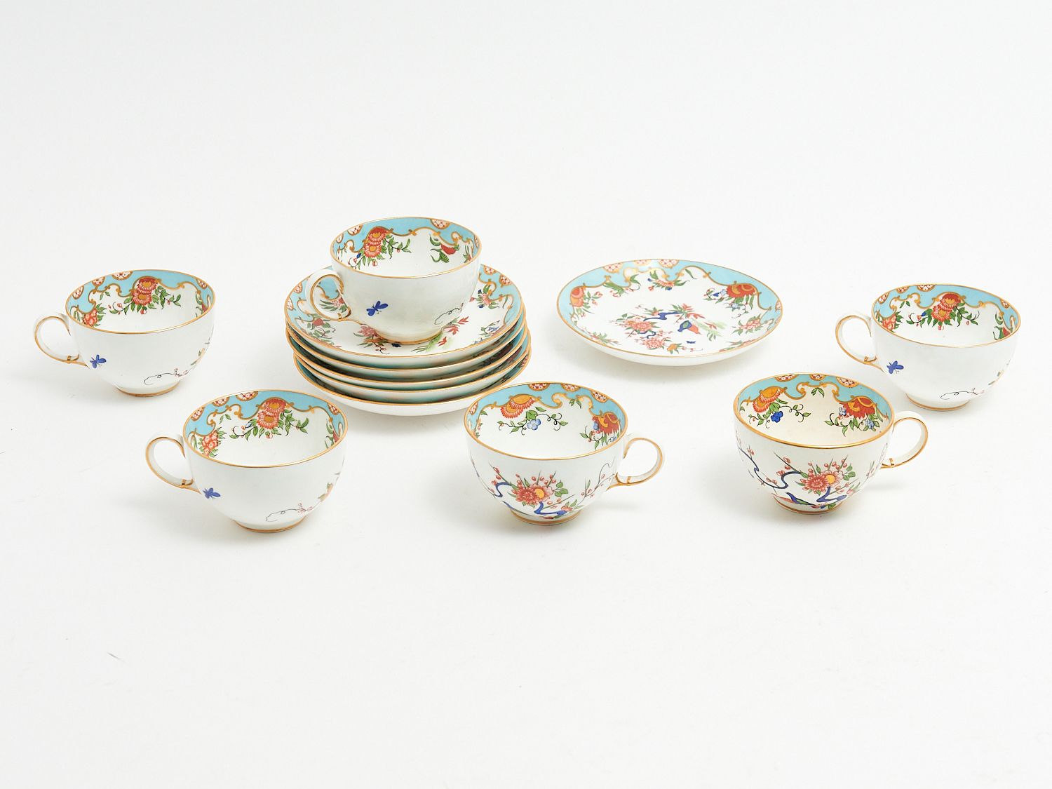 A GROUP OF SIX 19TH C DERBY PORCELAIN TEACUPS AND SAUCERS, LEONARD JOEL LOCAL DELIVERY: SMALL