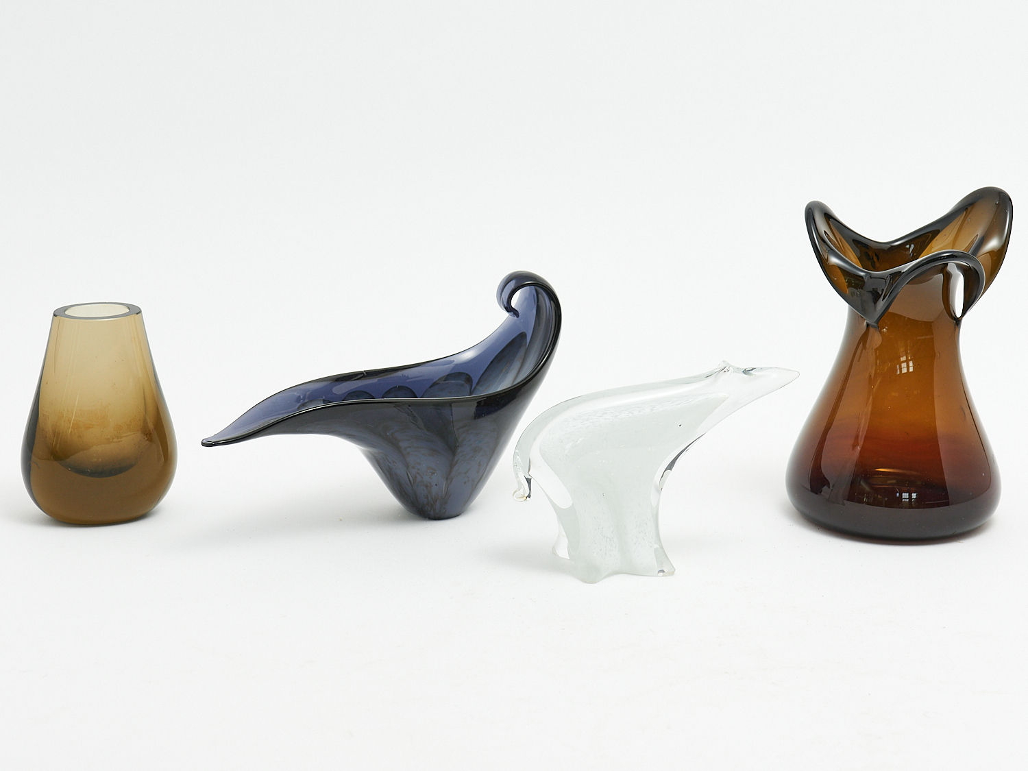 A GROUP OF GLASS INCLUDING SIGNED VASE H.17.5CM (TALLEST), LEONARD JOEL LOCAL DELIVERY: SMALL
