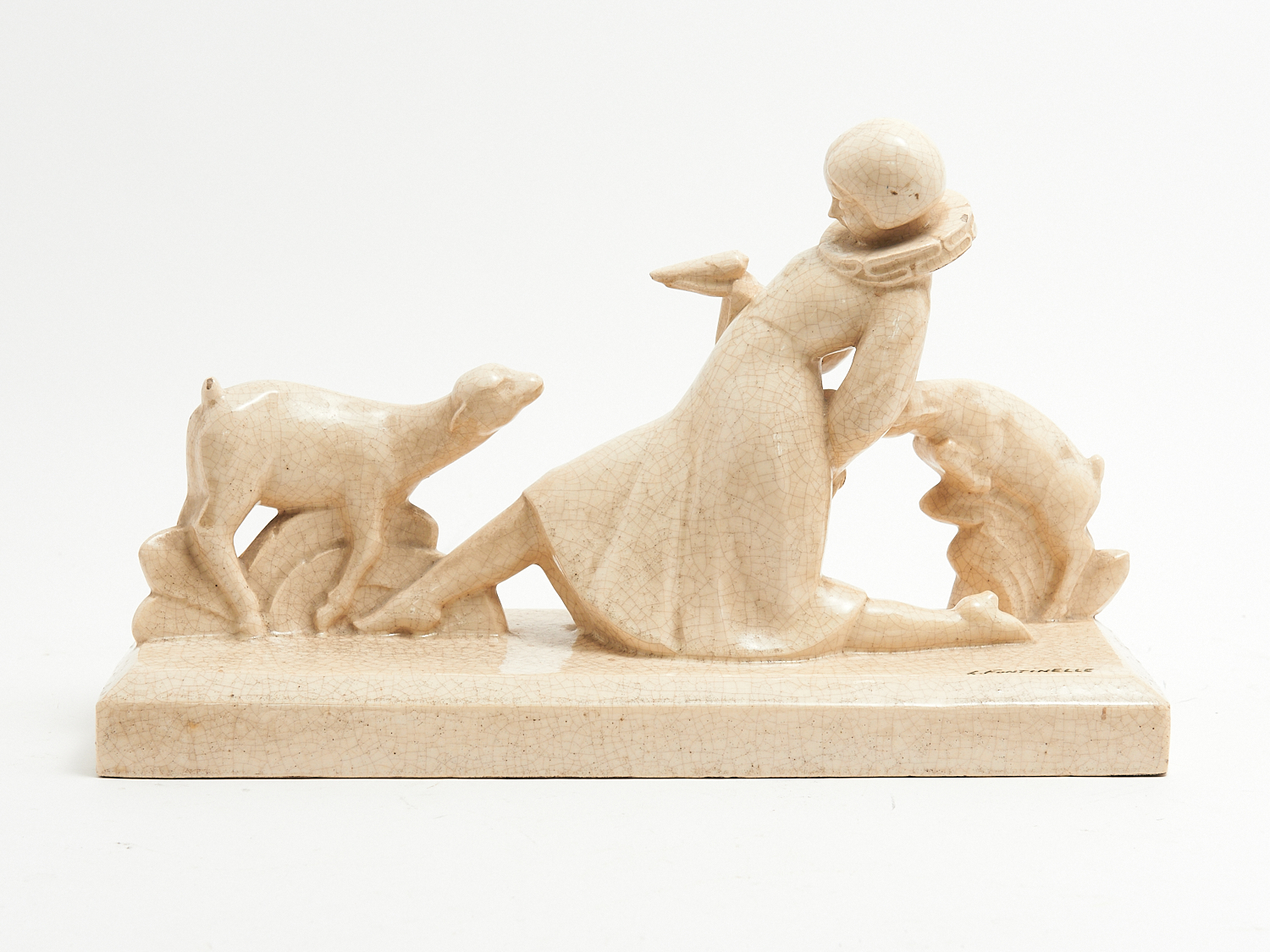 A FRENCH ART DECO CERAMIC FIGURE GROUP, L.44CM, LEONARD JOEL LOCAL DELIVERY: MEDIUM