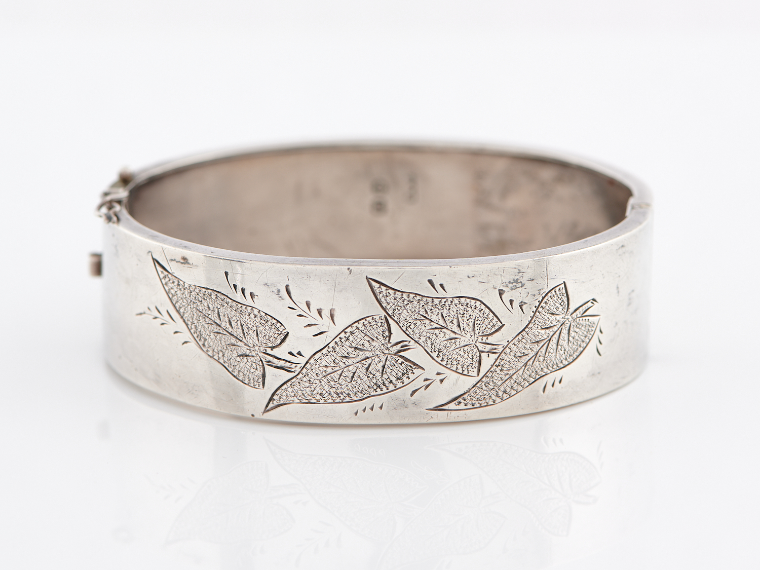 A VICTORIAN HINGED BANGLE IN SILVER, BIRMINGHAM HALLMARKS, CIRCA 1884, INTERIOR MEASUREMENTS 60 X 47MM