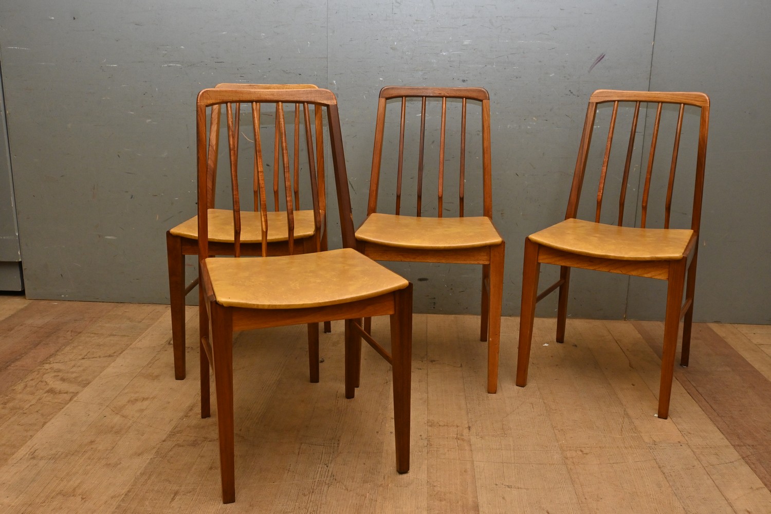 A SET OF FOUR MUSTARD THB CHAIRS (A/F) (84H X 43W X 43D CM) (LEONARD JOEL DELIVERY SIZE: LARGE)