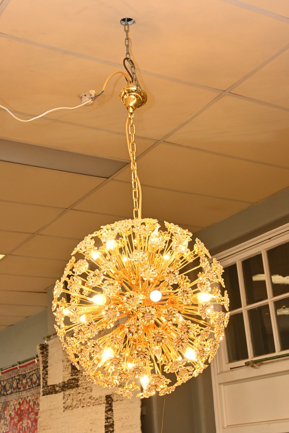 A GOLD FLOWER SPUTNIK CRYSTAL CHANDELIER (70CM D) (PLEASE NOTE THIS HEAVY ITEM MUST BE REMOVED BY CARRIERS AT THE CUSTOMER'S EXPENSE. LEONARD JOEL STAFF CANNOT ASSIST CARRYING THIS ITEM) (X-LARGE ITEM)