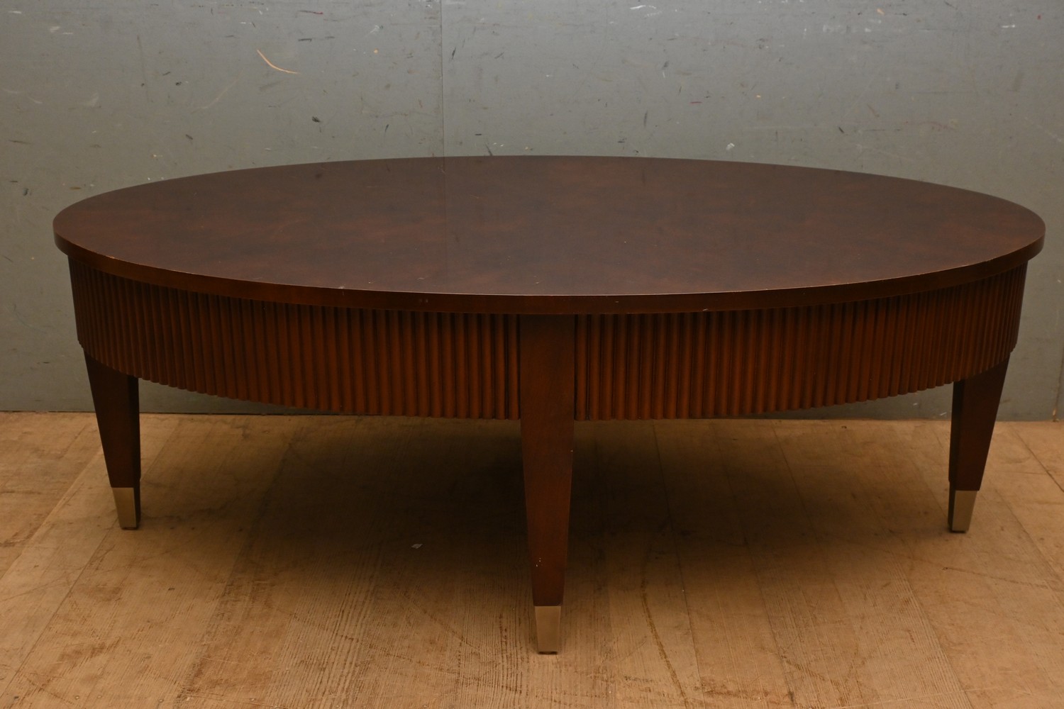A CONTEMPORARY TIMBER COFFEE TABLE (A/F) (50H X 137W X 79D CM) (PLEASE NOTE THIS HEAVY ITEM MUST BE REMOVED BY CARRIERS AT THE CUSTOMER'S EXPENSE. LEONARD JOEL STAFF CANNOT ASSIST CARRYING THIS ITEM) (X-LARGE ITEM)