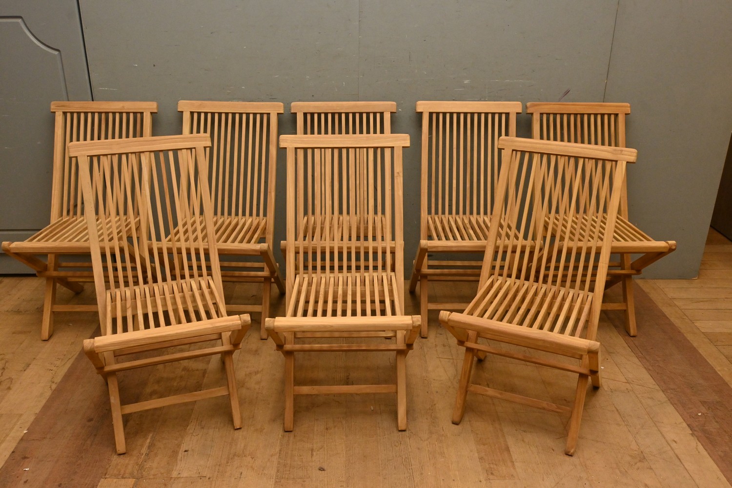 A SET OF EIGHT OUTDOOR TEAK FOLDING CHAIRS (91H X 48W X 56D CM) (LEONARD JOEL DELIVERY SIZE: X LARGE)