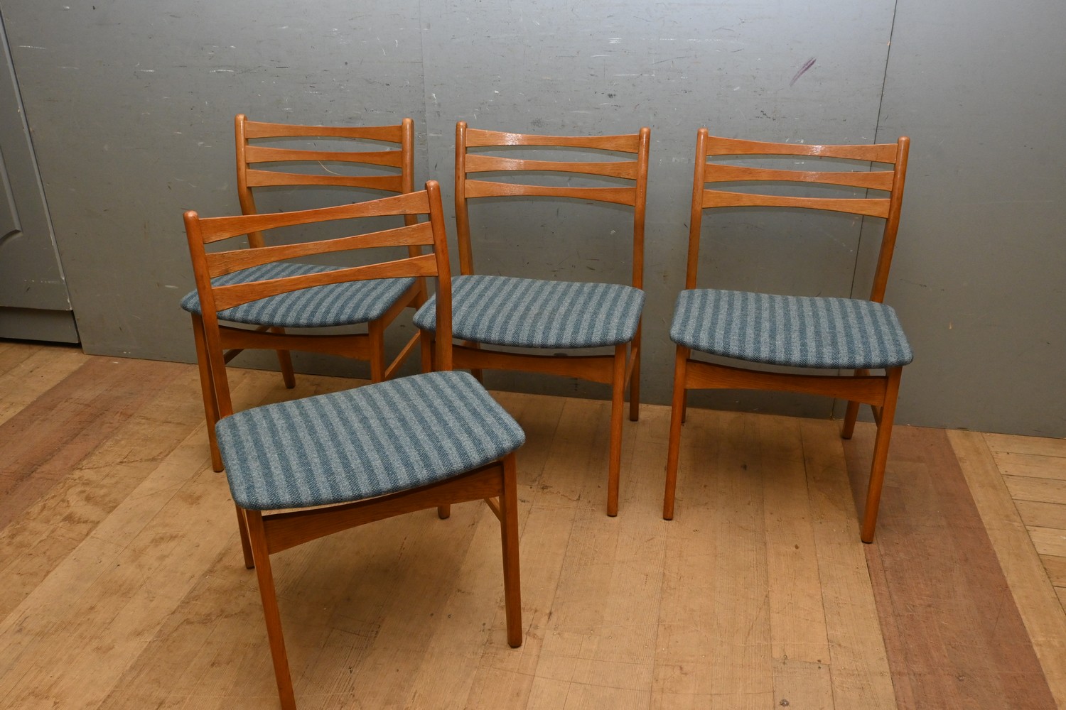 A SET OF FOUR BEECHWOOD 1960'S LADDERBACK DINING CHAIRS (81H X 49W X 458D CM) (LEONARD JOEL DELIVERY SIZE: LARGE)