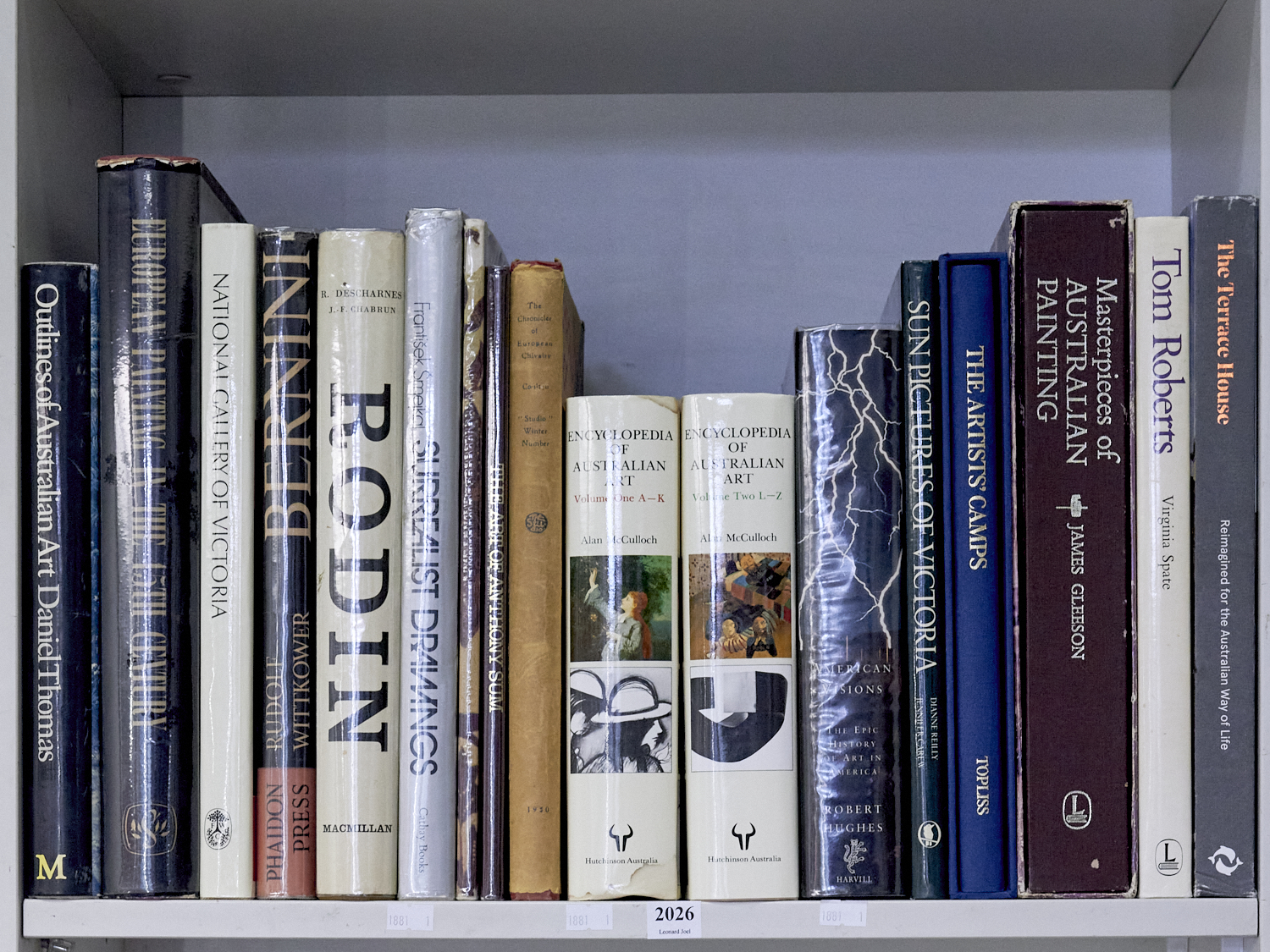 A SHELF OF MISCELLANEOUS ART REFERENCE, LEONARD JOEL LOCAL DELIVERY: MEDIUM