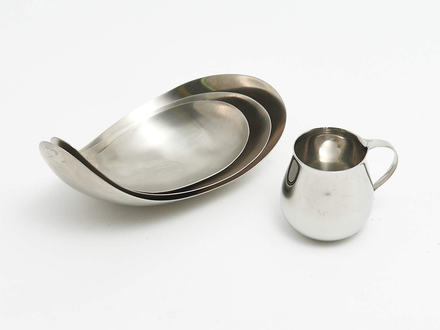 A TRIO OF GEORG JENSEN 'LEAF' DISHES WITH SMALL JUG, LEONARD JOEL LOCAL DELIVERY: SMALL