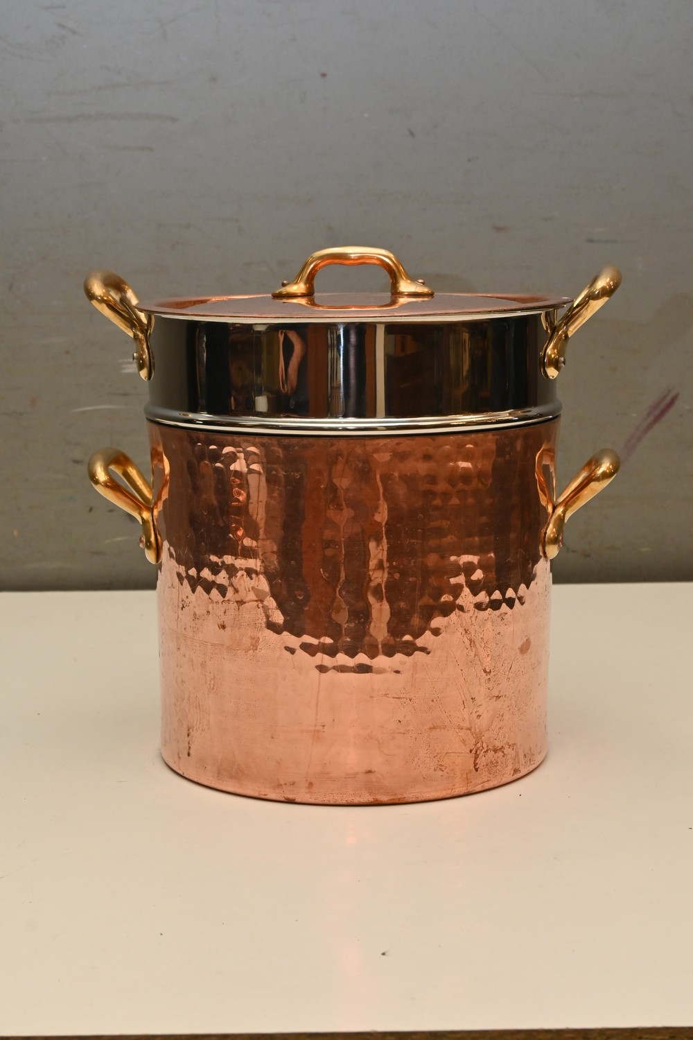 A FRENCH MAUVIEL COPPER COVERED POT WITH STEAMER (30H X 26D CM) (LEONARD JOEL DELIVERY SIZE: SMALL)