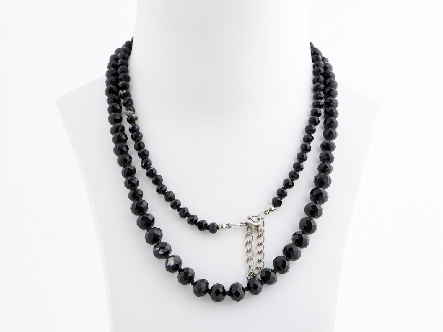 A GRADUATED FRENCH JET BEADED NECKLACE, APPOXIMATELY 940MM