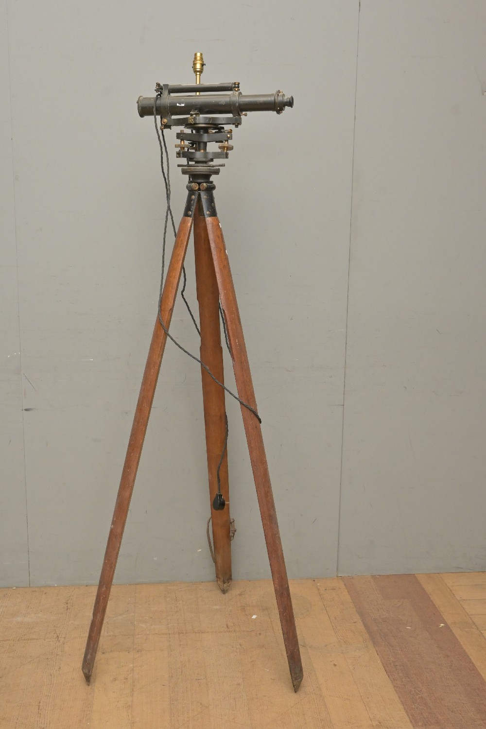 AN OLD TELESCOPE ON TRIPOD BASE CONVERTED TO A STANDARD LAMP (A/F) (195H) (LEONARD JOEL DELIVERY SIZE: X-LARGE)