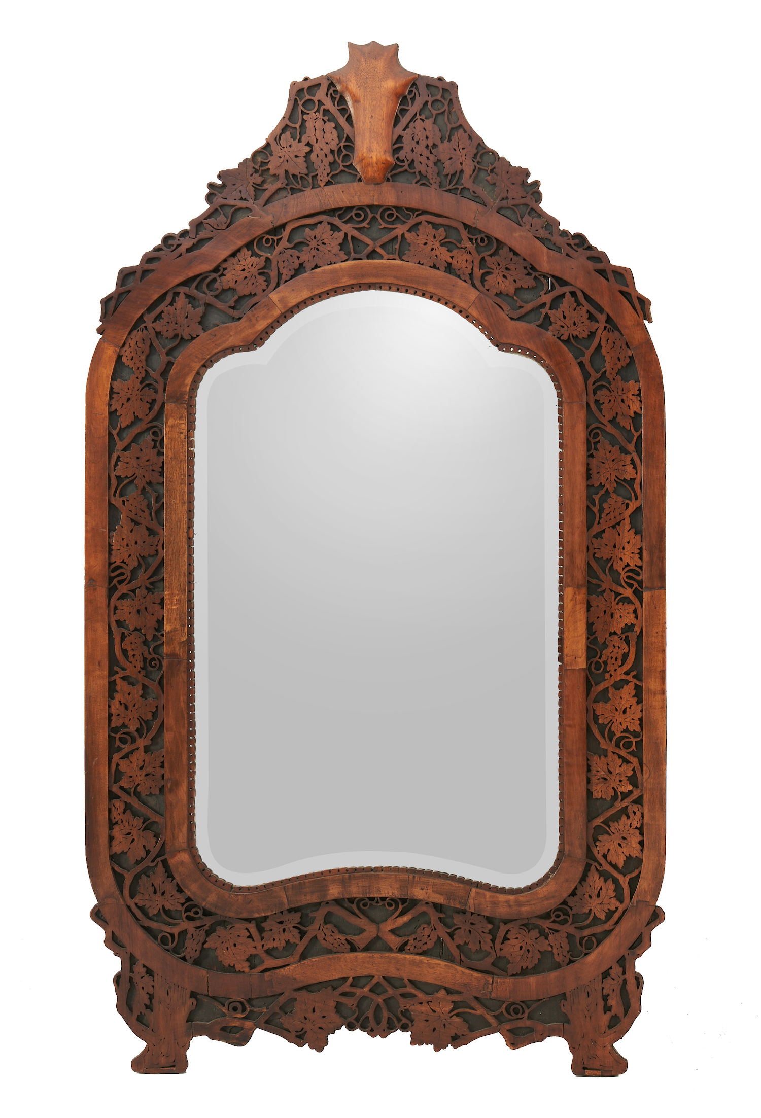 AN ITALIAN WALNUT-FRAMED OVERMANTLE MIRROR
