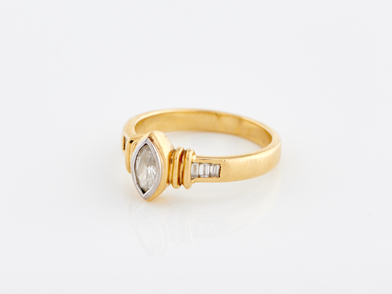 A MARQUISE DIAMOND RING IN 18CT GOLD, SIZE N, 4.8GMS