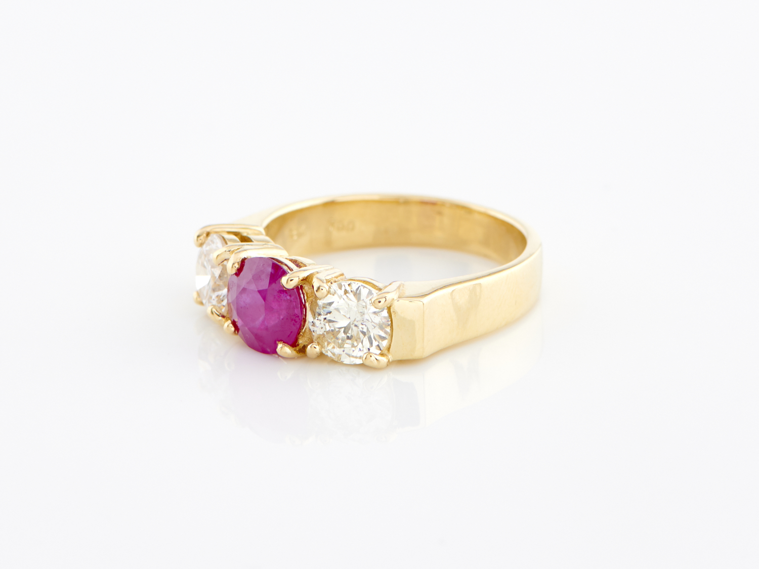 A BURMESE RUBY AND DIAMOND RING IN 18CT GOLD, THE RUBY TOTALLING 1.10CTS, THE DIAMONDS TOTALLING 1.08CTS, RING SIZE J
