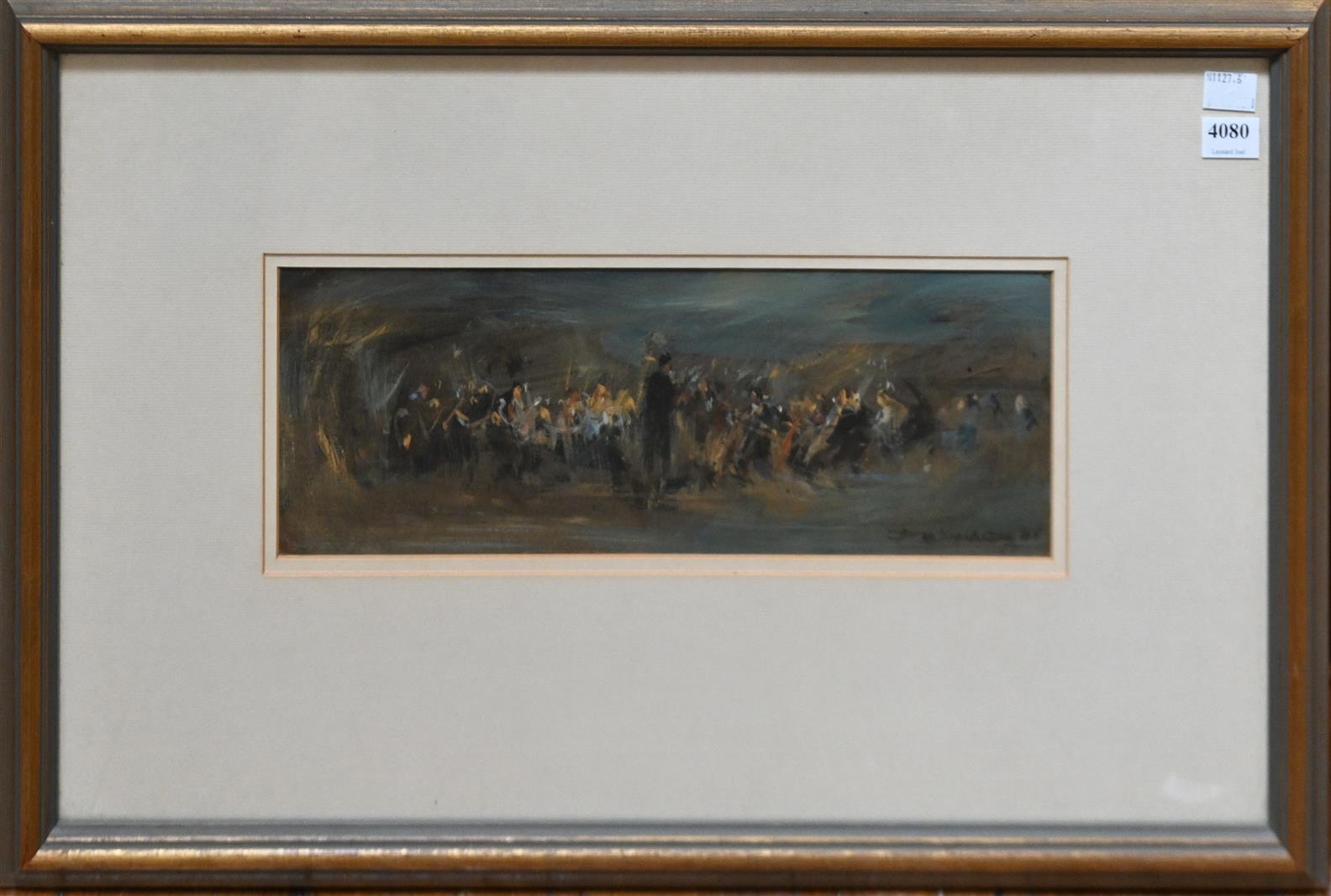 DAWSON MCDONALD, CONCERT STUDY 2 1986, OIL ON BOARD, SIGNED AND DATED LOWER RIGHT, 12 X 33.5CM, FRAME SIZE: 38 X 58.5CM