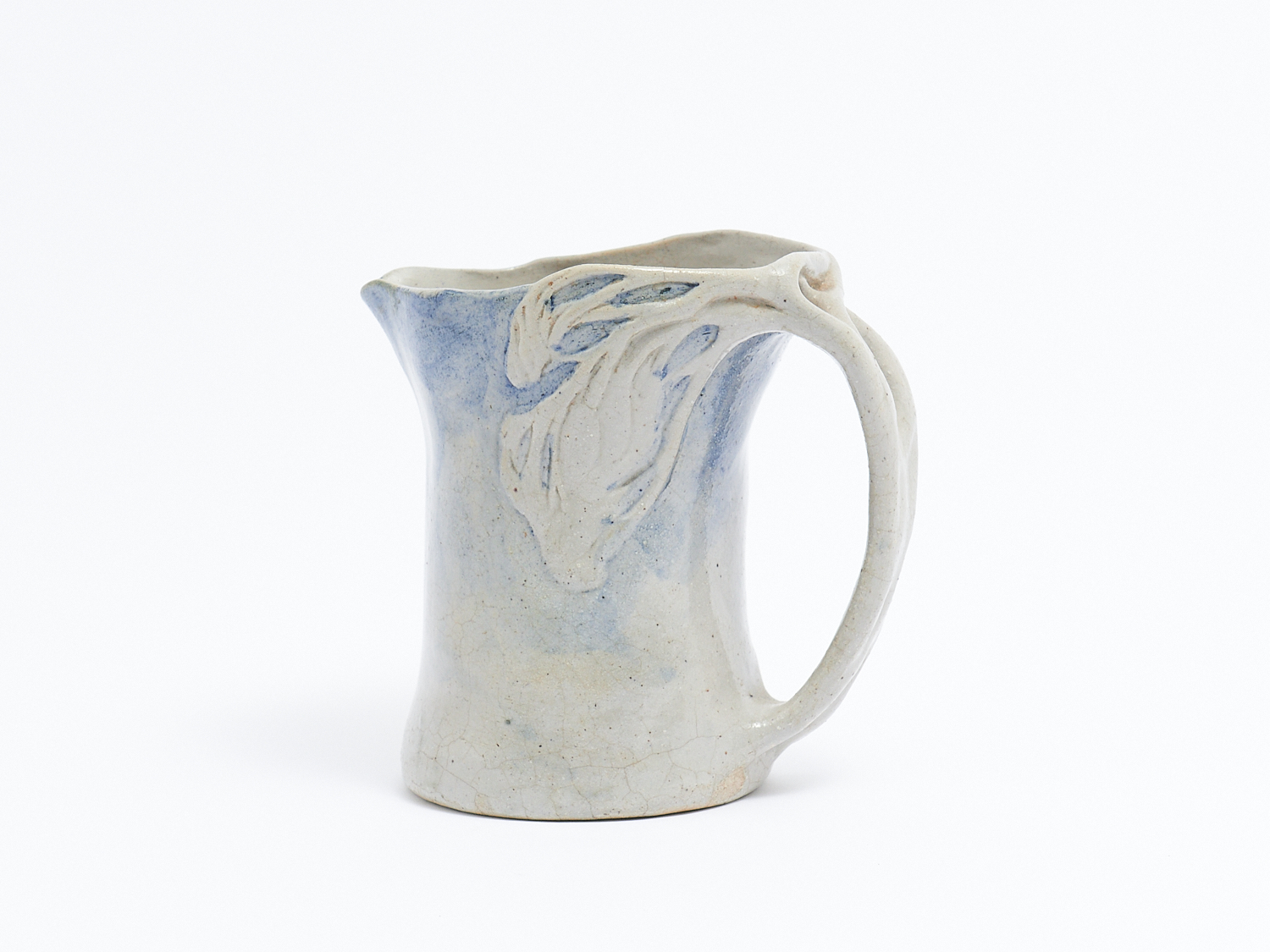 MERRIC BOYD POTTERY JUG WITH APPLIED WINDSWEPT TREE (A/F HAIRLINE), SIGNED TO BASE H.16CM, LEONARD JOEL LOCAL DELIVERY: SMALL