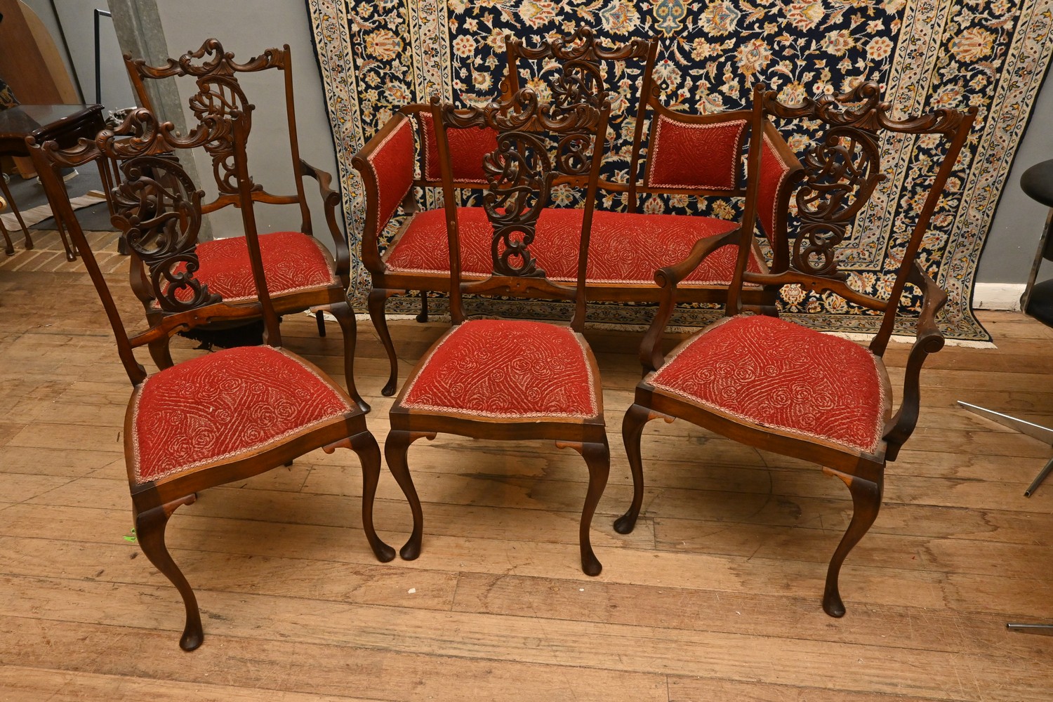 A FIVE PIECE VICTORIAN PARLOUR SETTING (A/F) (100H X 115W X 55D CM) (LEONARD JOEL DELIVERY SIZE: X-LARGE)