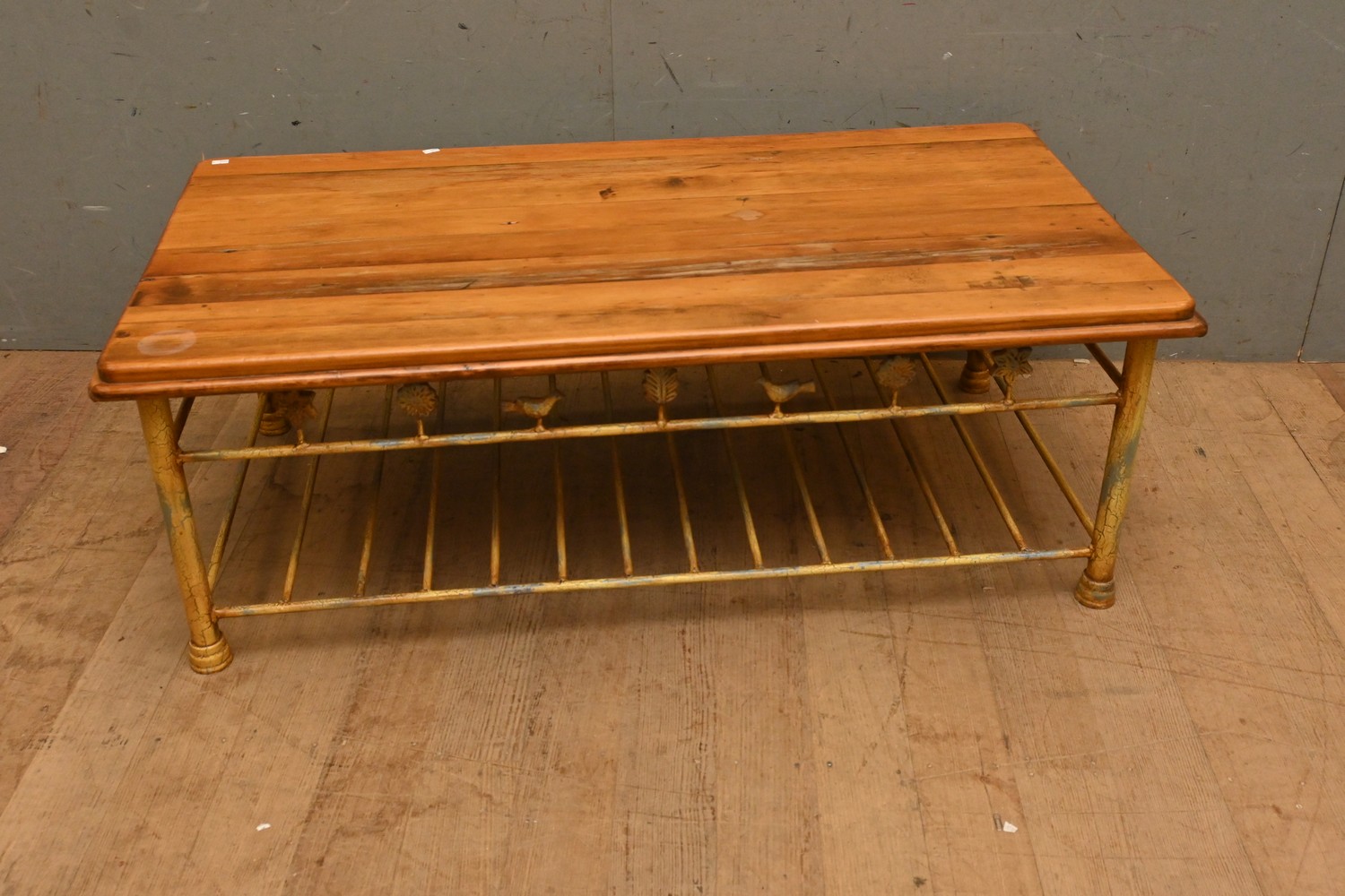 A TIMBER TWO TIER COFFEE TABLE WITH CRACKLE EFFECT (A/F) (43H X 119W X 64D CM) (LEONARD JOEL DELIVERY SIZE: X-LARGE)