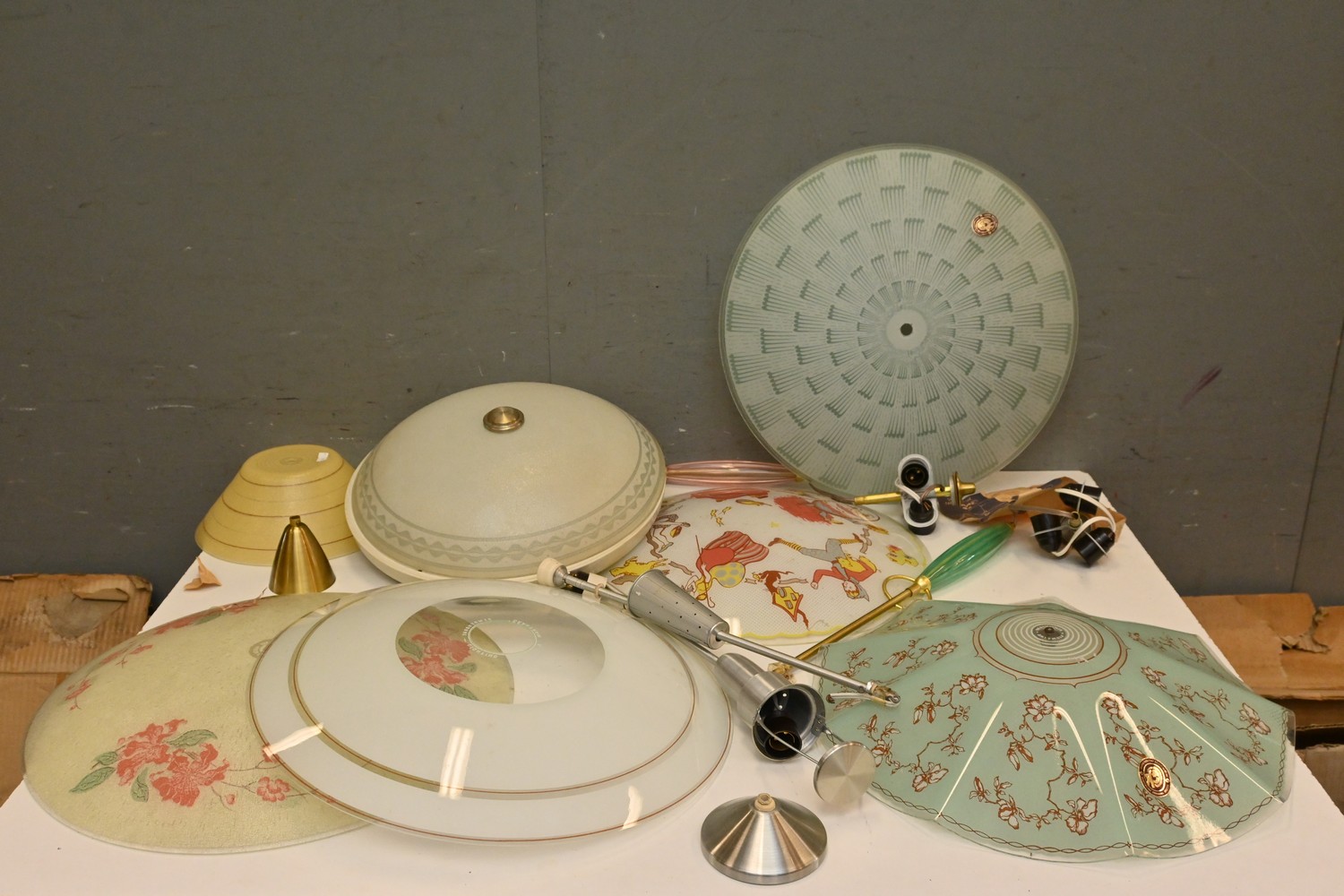 A COLLECTION OF SEVEN 1950S KEMPTHORNE CEILING LIGHT FITTINGS (A/F) ( 49 DIAMETER CM) (LEONARD JOEL DELIVERY SIZE: LARGE)
