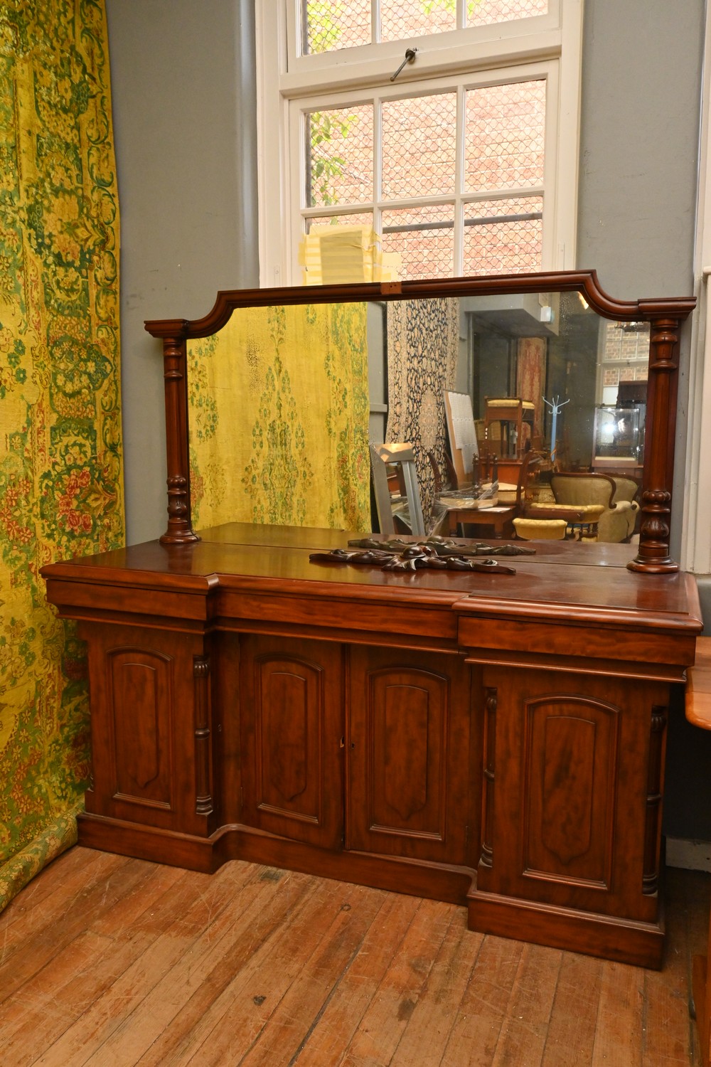 A VICTORIAN MAHOGANY SIDEBOARD (A/F) (215H X 200W X 66D CM) (PLEASE NOTE THIS HEAVY ITEM MUST BE REMOVED BY CARRIERS AT THE CUSTOMER'S EXPENSE. LEONARD JOEL STAFF CANNOT ASSIST CARRYING THIS ITEM) (X-LARGE ITEM)