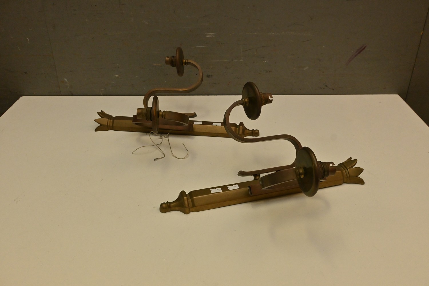 A PAIR OF ANTIQUE SOLID BRASS WALL SCONCES (AF) (42H X 38W CM) (LEONARD JOEL DELIVERY SIZE: MEDIUM)