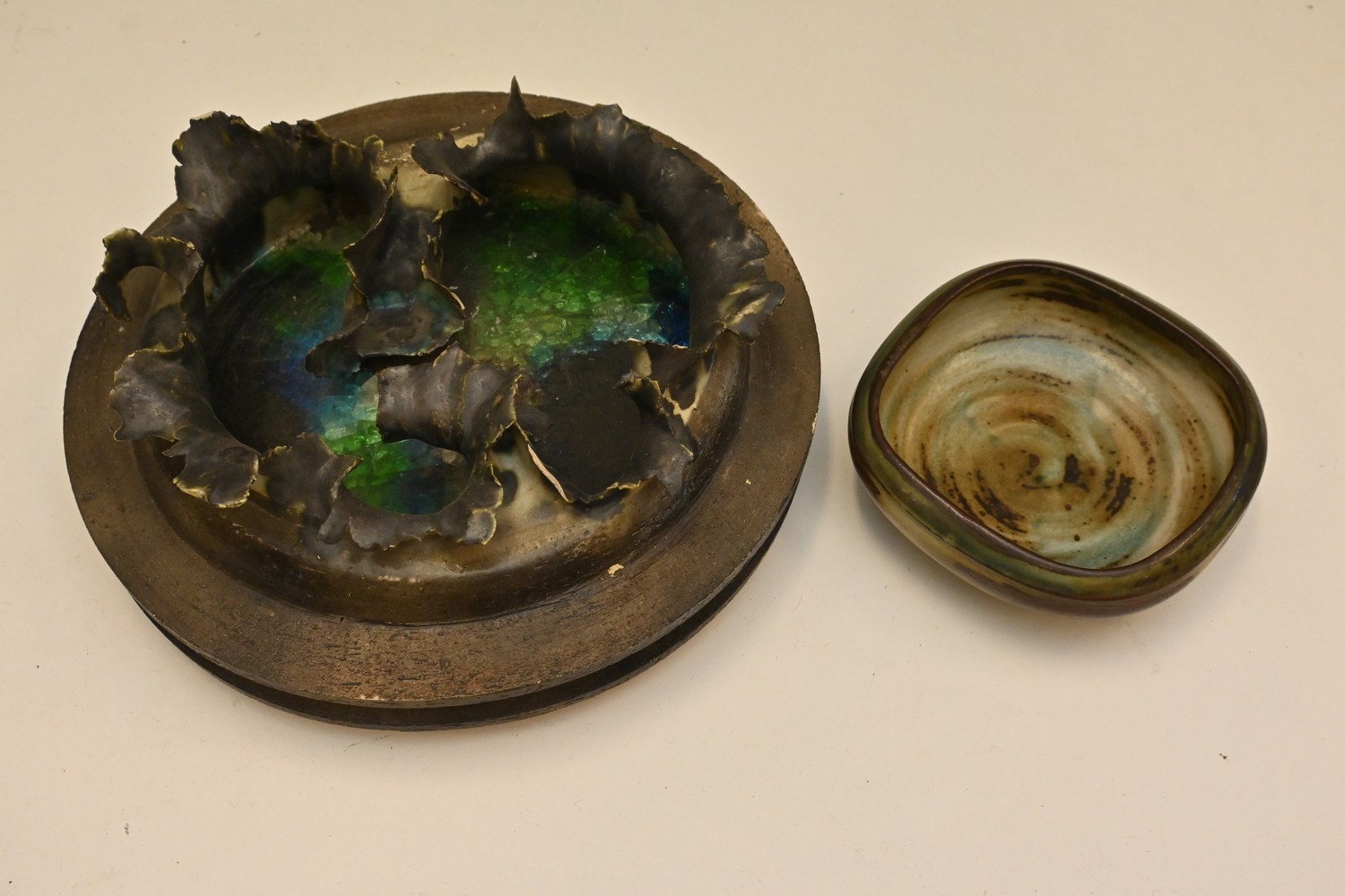1970S DANISH BRUTALIST POTTERY DISH & BOWL FOR ROYAL COPENHAGEN (A/F) (10H X 31DIA) (LEONARD JOEL DELIVERY SIZE: MEDIUM)