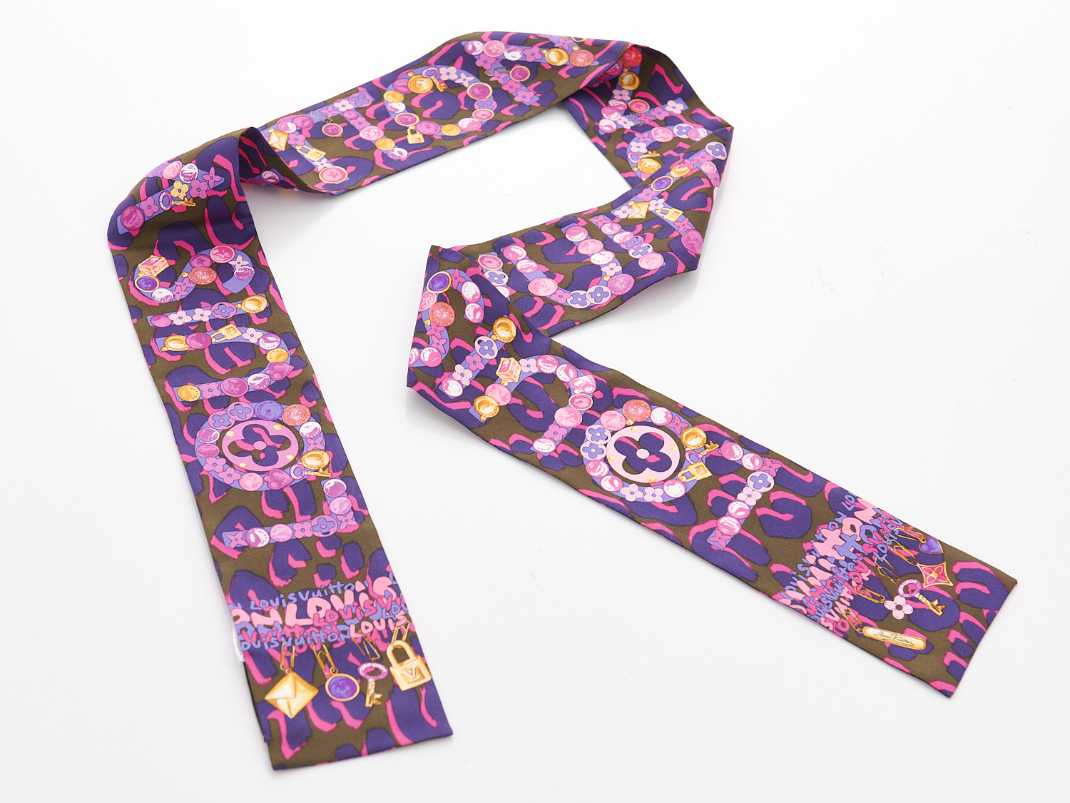 LOUIS VUITTON, SILK TWILLY - Styled in pink and brown silk, 7 x 118cm.
