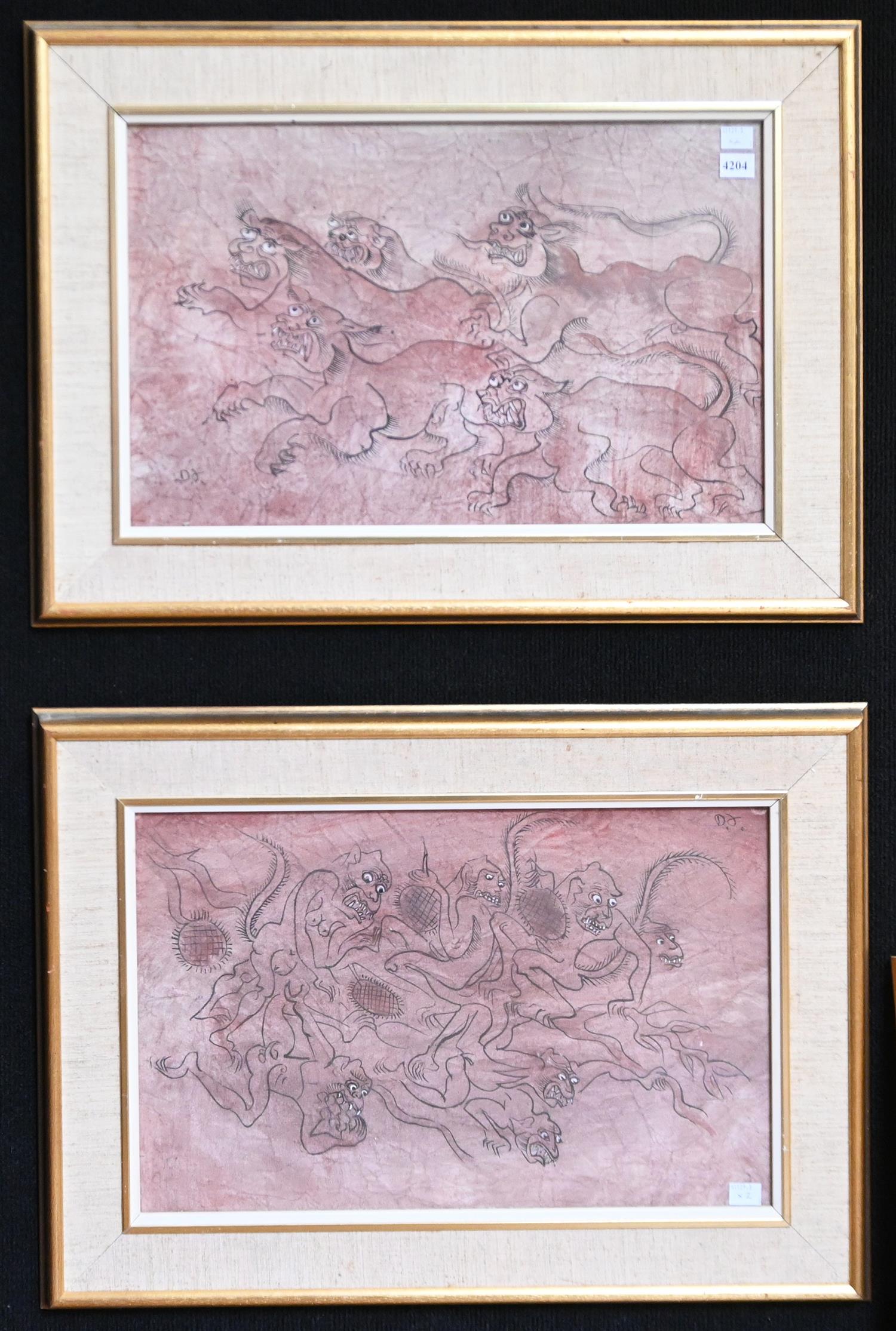 Overall good condition. Surface dust present. Creases throughout both images, seemingly from time of creation.