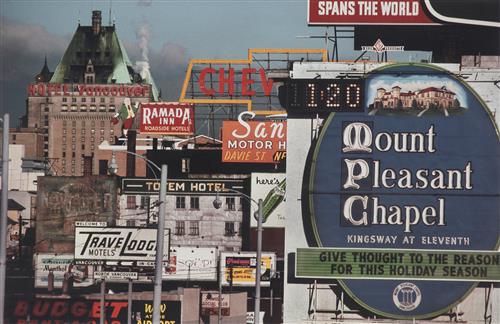"Fred Herzog was born in Germany in 1930, and immigrated to Vancouver, BC in 1953. Throughout his career he worked almost exclusively with Kodachrome slide film, and only in the past decade did technology allow him to make archival pigment prints that match the exceptional colour and intensity of the Kodachrome slide. Herzog's use of colour was unusual in the 1950s and 60s, a time when art photography was almost exclusively associated with black and white imagery. In this respect, his photographs can be seen as a pre-figuration of the "New Colour" photographers of the 1970s."