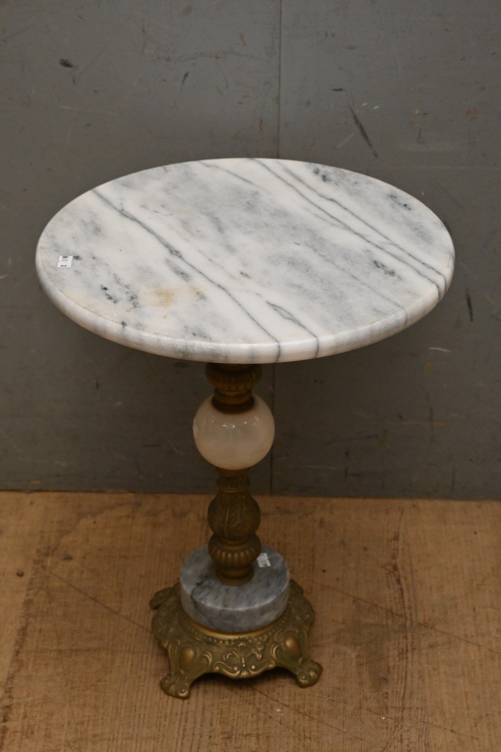 AN ITALIANATE MARBLE TOPPED BRASS SIDE TABLE (A/F) (47H X 38D CM) (LEONARD JOEL DELIVERY SIZE: LARGE)
