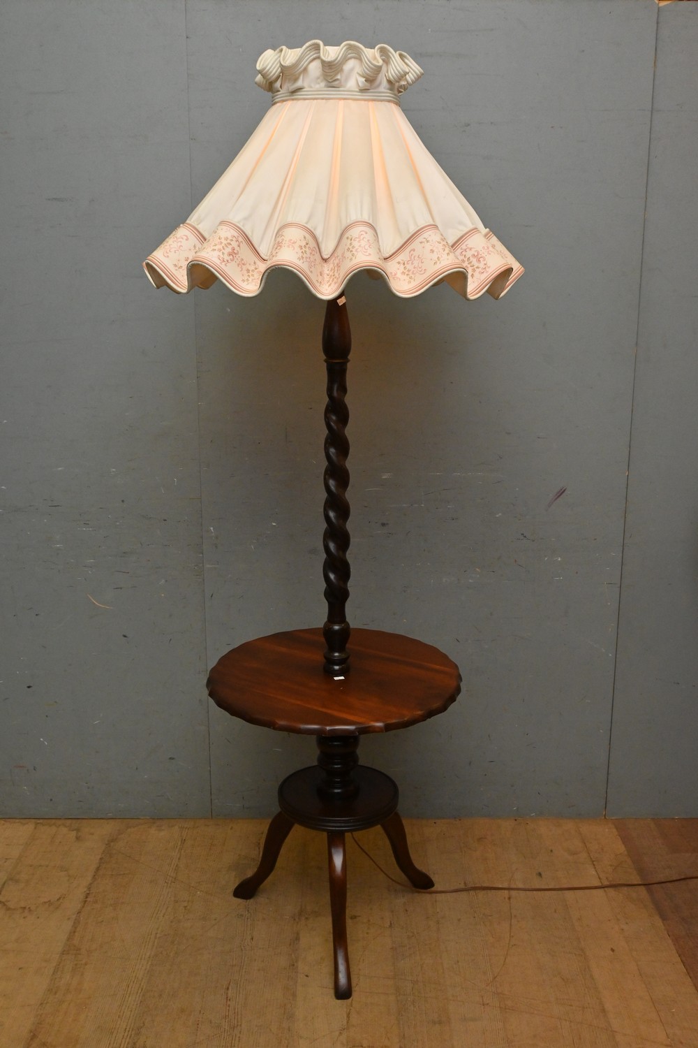 AN EARLY 20TH CENTURY STANDARD LAMP TABLE WITH BARLEY TWIST STEM (H190 X D56 CM) (LEONARD JOEL DELIVERY SIZE: LARGE)
