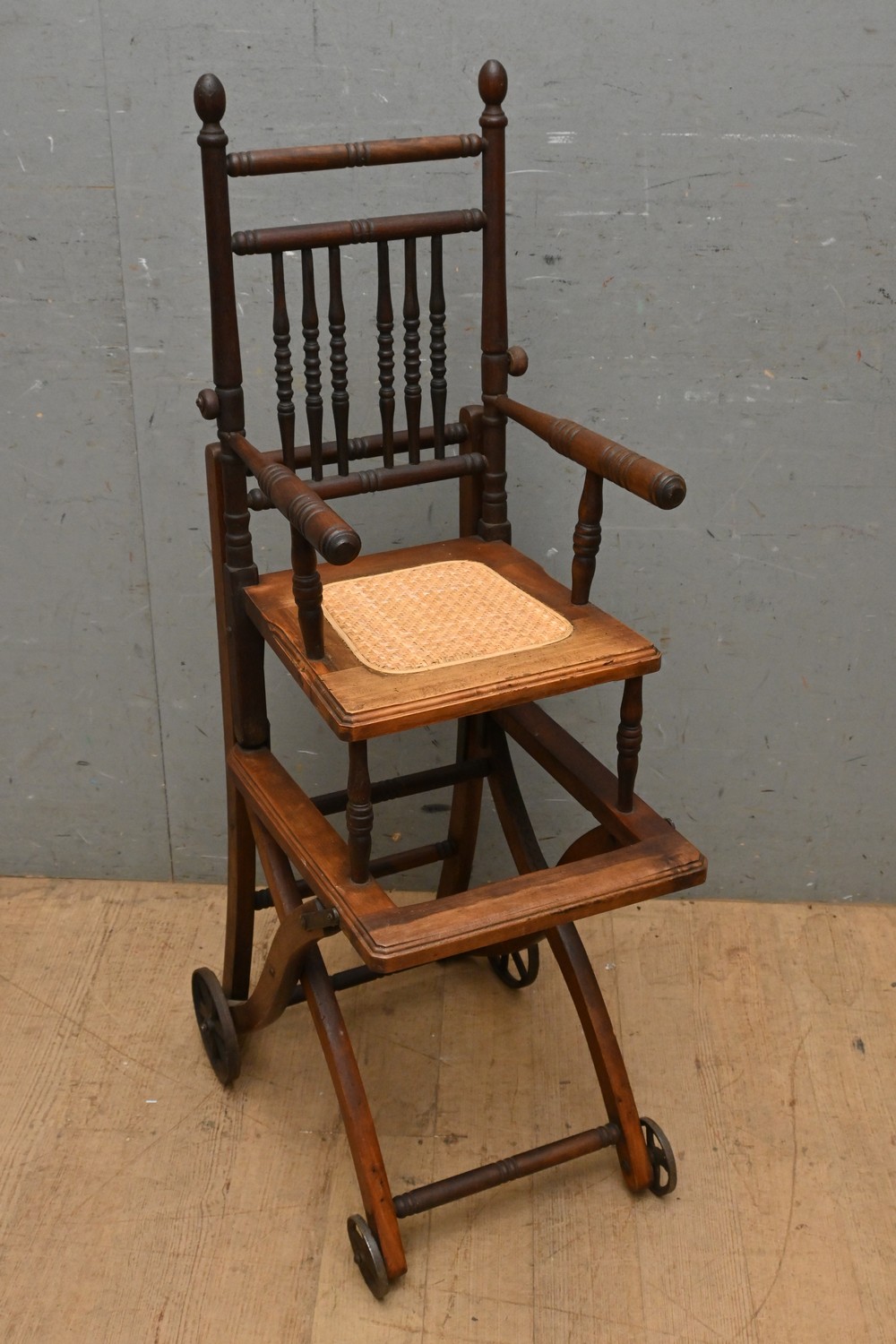 AN ANTIQUE DOLL'S CHAIR (A/F) (110H X 36W X 53D CM) (LEONARD JOEL DELIVERY SIZE: LARGE)