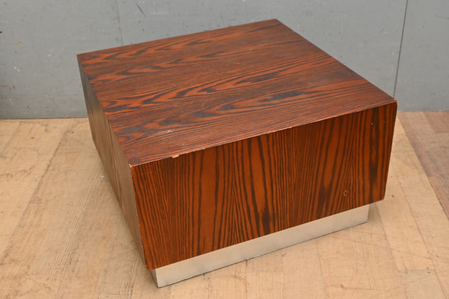 A 1980S COFFEE TABLE WITH ROSEWOOD VENEER (A/F) (44H X 75W X 75D CM) (LEONARD JOEL DELIVERY SIZE: X-LARGE)