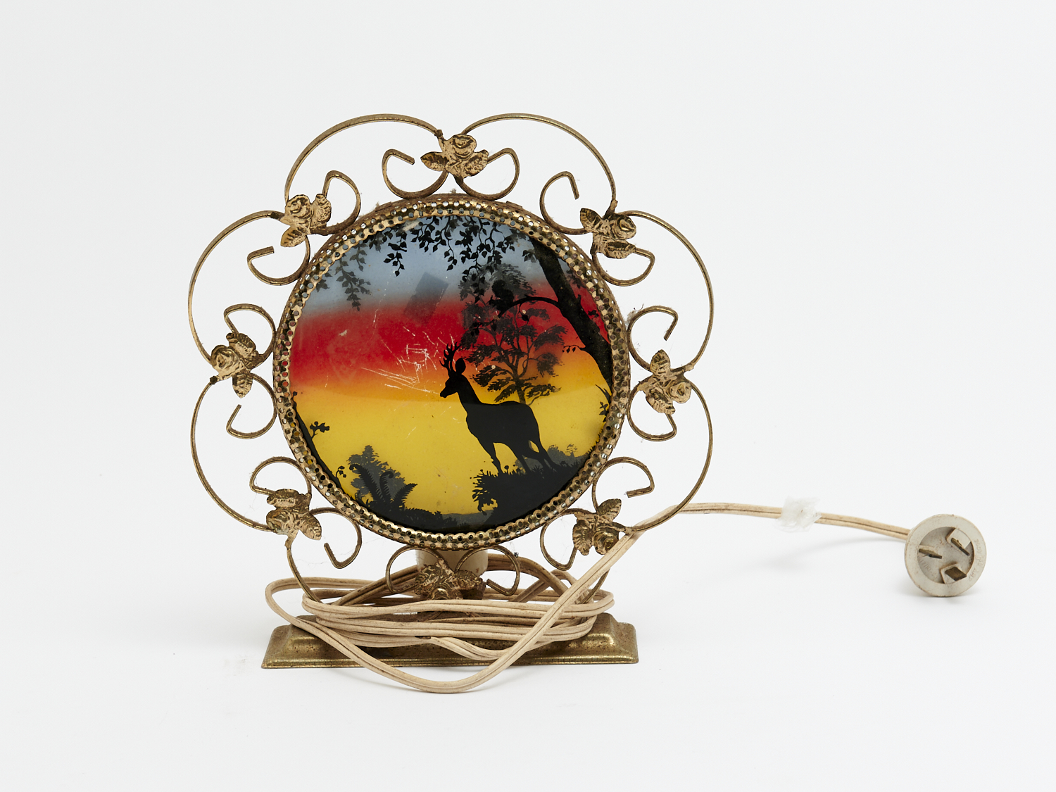 A BRASS ADORNED SILHOUETTE TABLE LAMP H.24CM (A/F), LEONARD JOEL LOCAL DELIVERY: MEDIUM