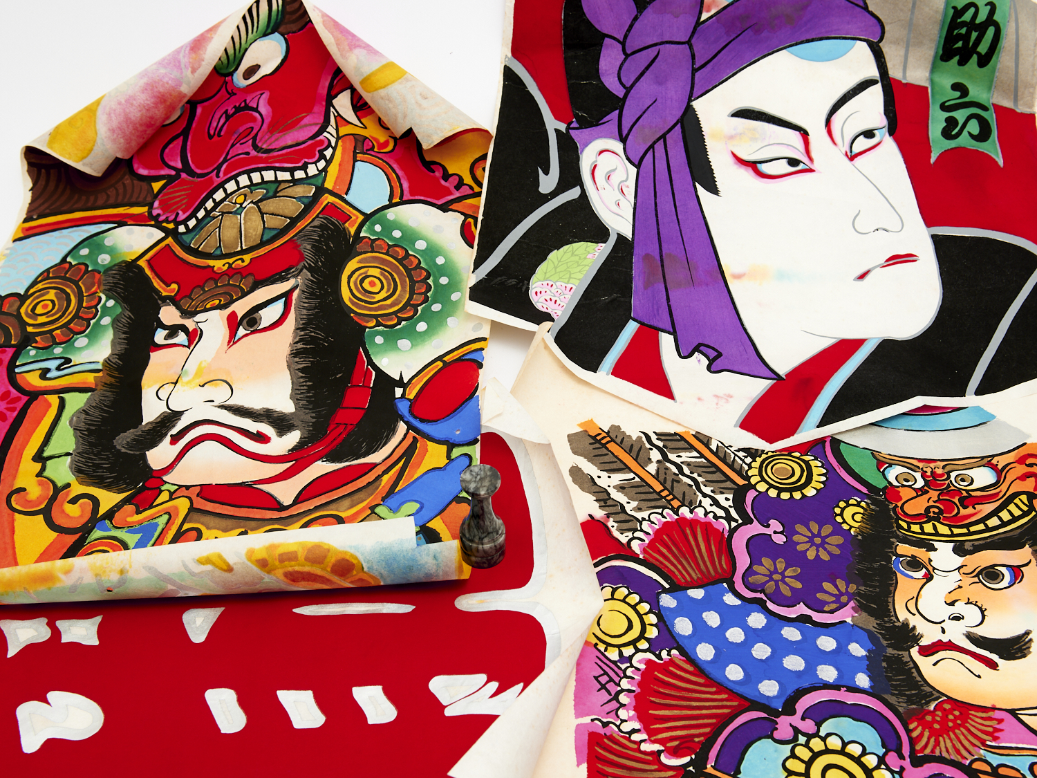 FOUR JAPANESE HAND PAINTED PAPER KITES, LEONARD JOEL LOCAL DELIVERY: MEDIUM