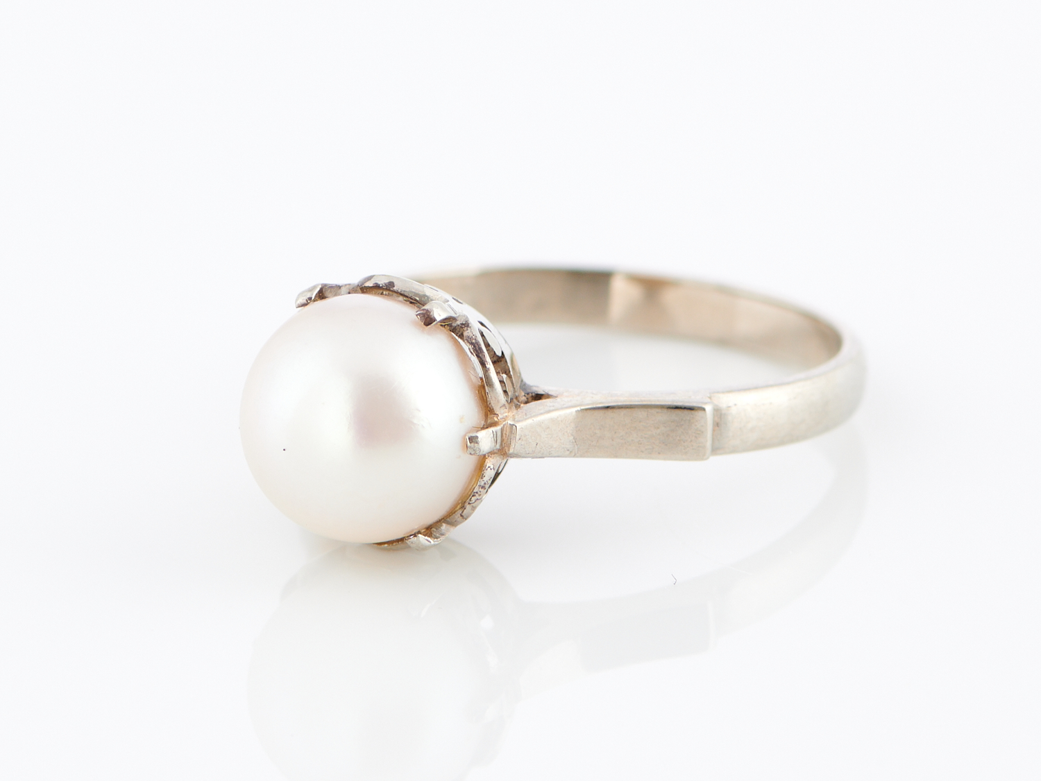 A CULTURED PEARL RING IN 9CT WHITE GOLD, SIZE O